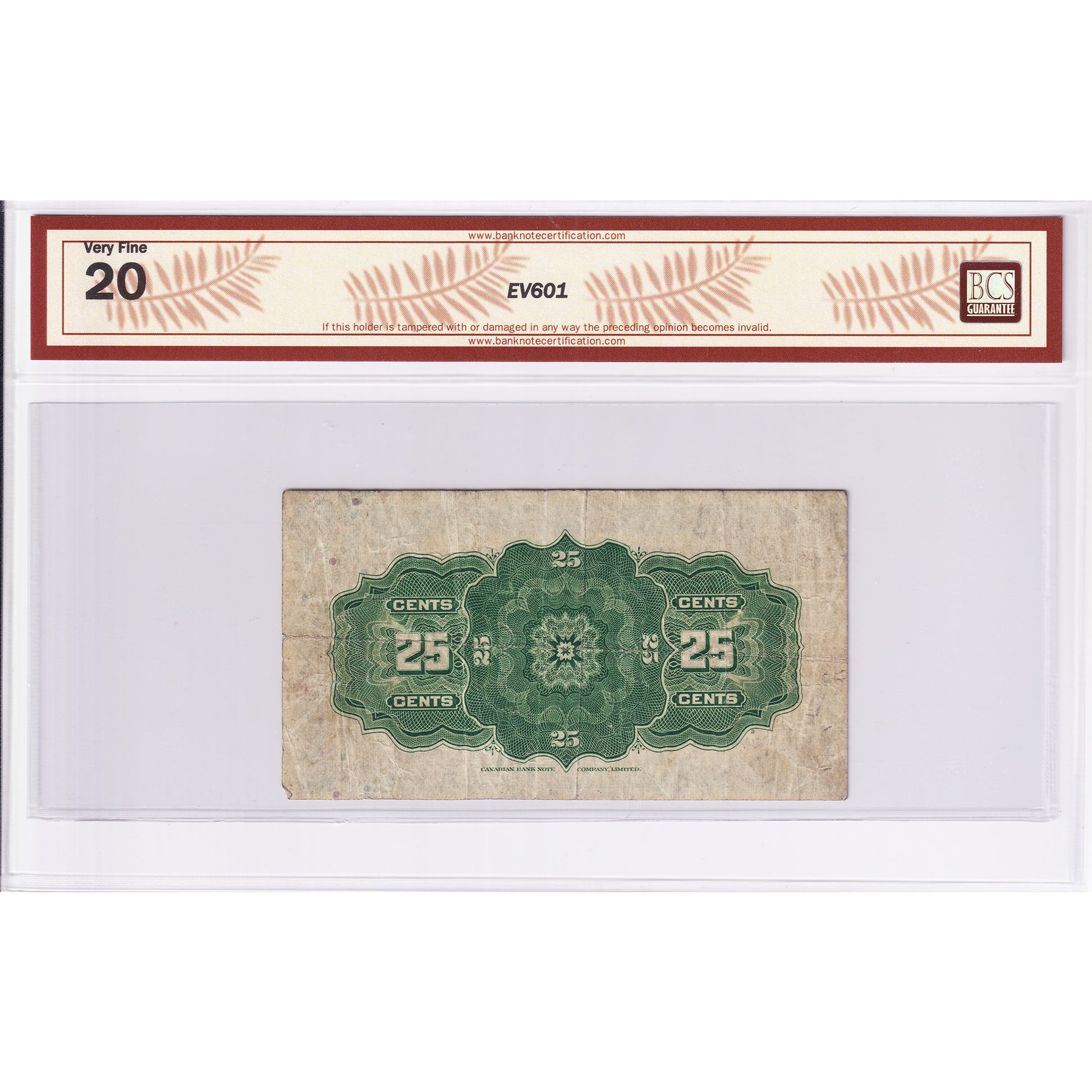 DC-24b 1923 Dominion 25-cent Shinplaster, Hyndman-Saunders, No AUTHORIZED, Check Letter C, BCS Certified VF-20 (Holes)