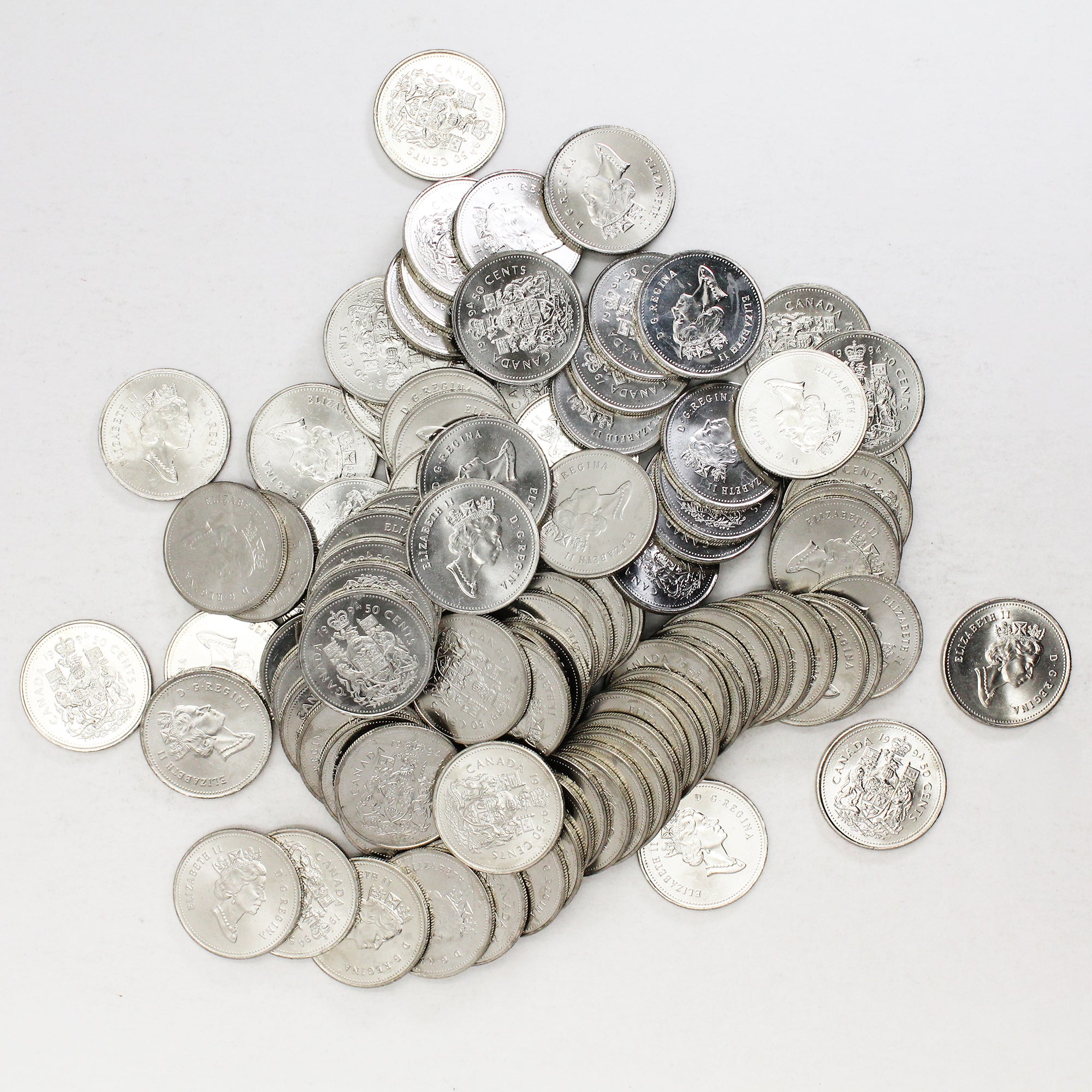 Lot of 100x 1994 Canada 50-cents, 100Pcs.