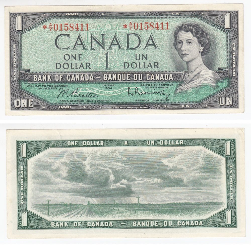 BC-37bA 1954 Canada $1 Beattie-Rasminsky, *A/Y, AU