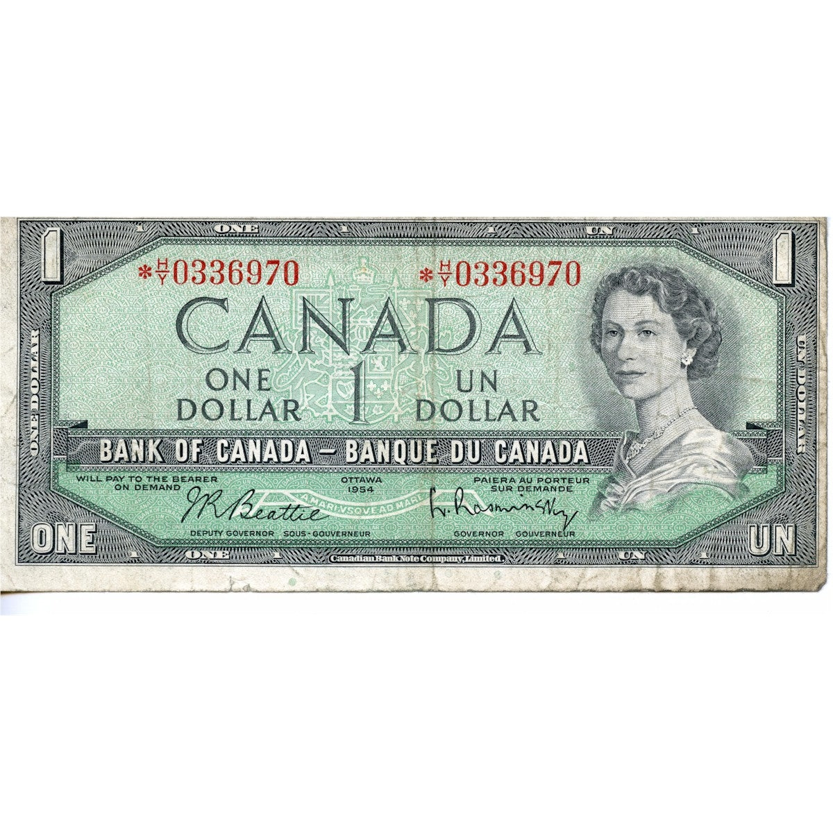 BC-37bA 1954 Canada $1 Beattie-Rasminsky, *H/Y, F-VF