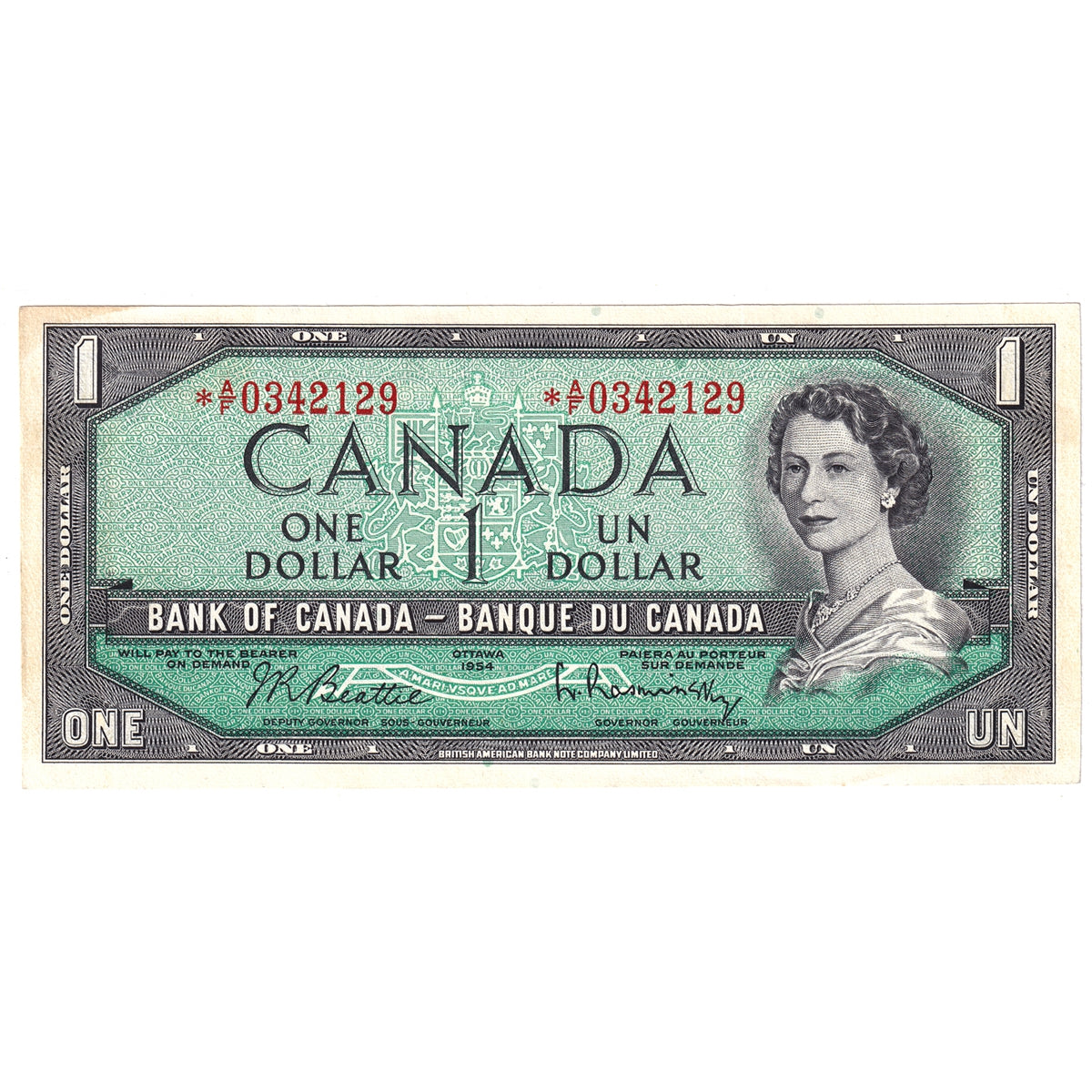 BC-37bA-i 1954 Canada $1 Beattie-Rasminsky, *A/F, AU-UNC