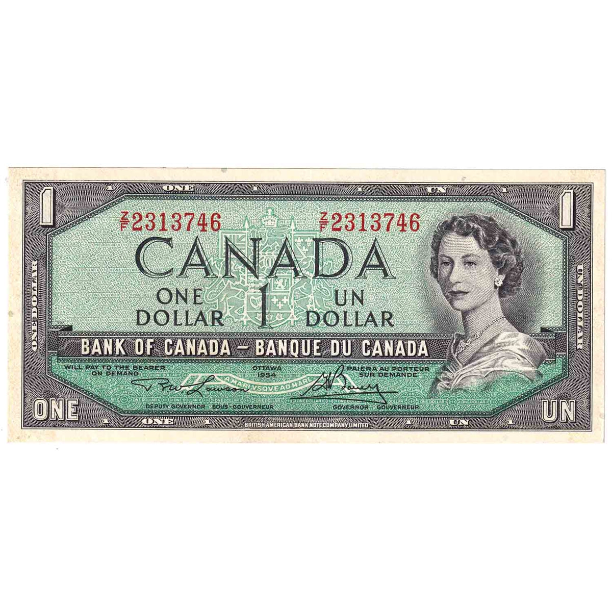 BC-37d 1954 Canada $1 Lawson-Bouey, Z/F, AU-UNC
