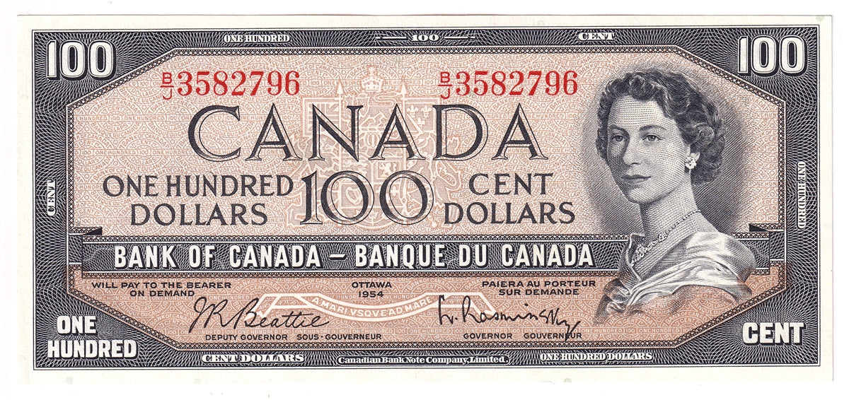 BC-43b 1954 Canada $100 Beattie-Rasminsky, B/J, AU