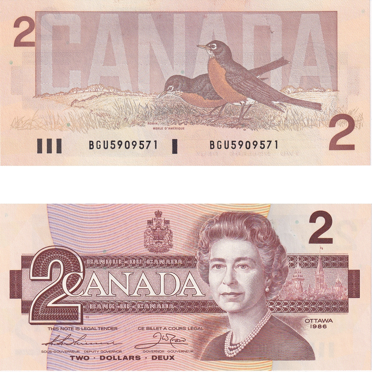 BC-55b 1986 Canada $2 Thiessen-Crow, BGU, UNC