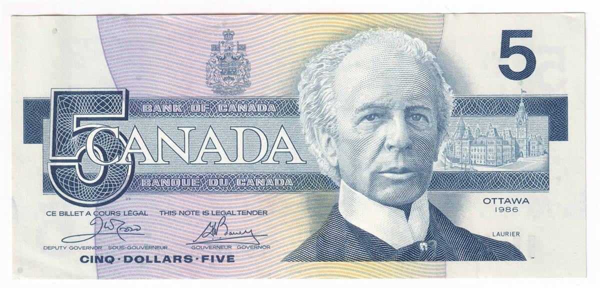 BC-56a-i 1986 Canada $5 Crow-Bouey, EOM, EF-AU