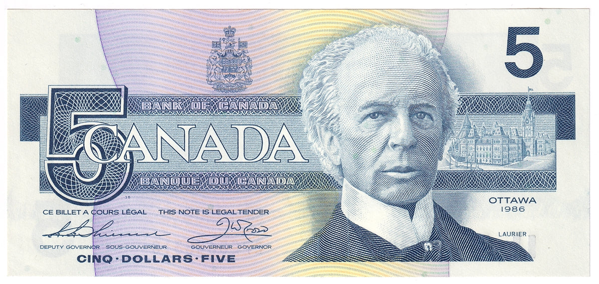BC-56b 1986 Canada $5 Thiessen-Crow, EPE, AU-UNC