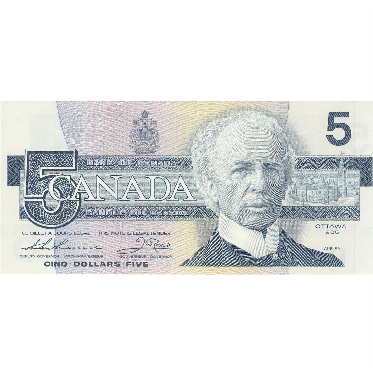 BC-56b 1986 Canada $5 Thiessen-Crow, FNM, AU-UNC