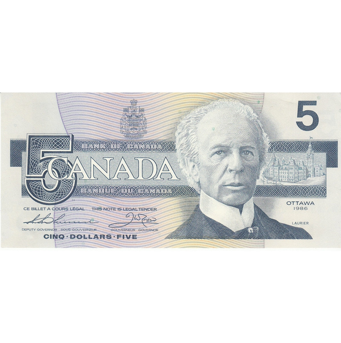 BC-56b 1986 Canada $5 Thiessen-Crow, FOE, AU-UNC
