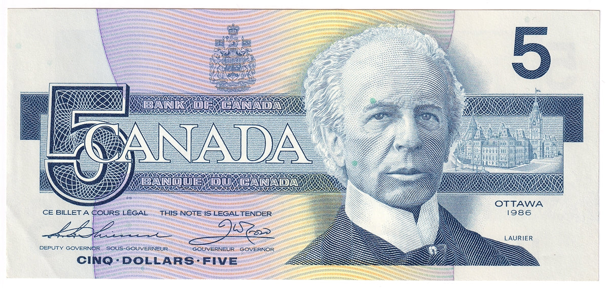 BC-56b 1986 Canada $5 Thiessen-Crow, FOF, AU
