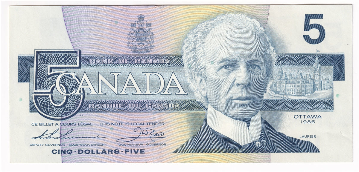 BC-56b 1986 Canada $5 Thiessen-Crow, FOM, AU