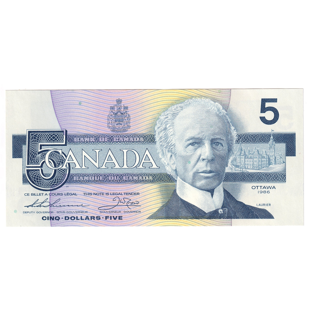BC-56b 1986 Canada $5 Thiessen-Crow, FOM, UNC