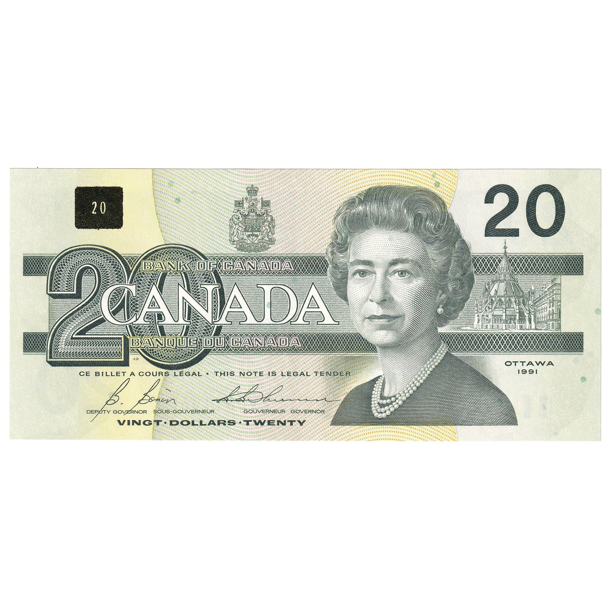 BC-58b 1991 Canada $20 Bonin-Thiessen, EVD with Back Position Number, AU-UNC