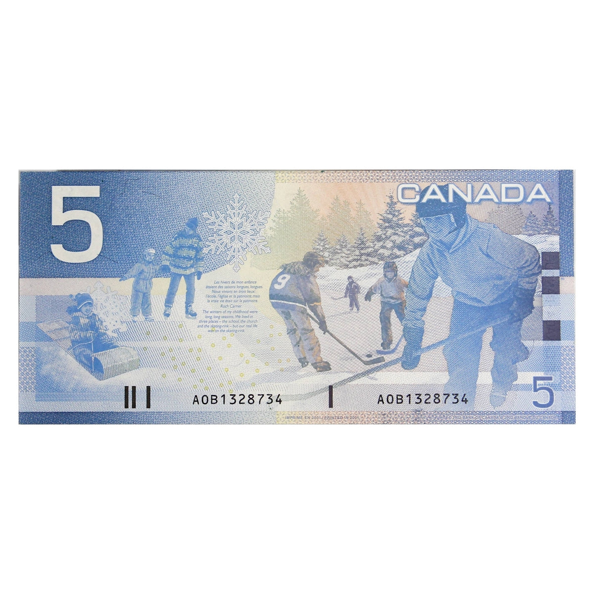 BC-62a 2001 Canada $5 Knight-Dodge, AOB, UNC