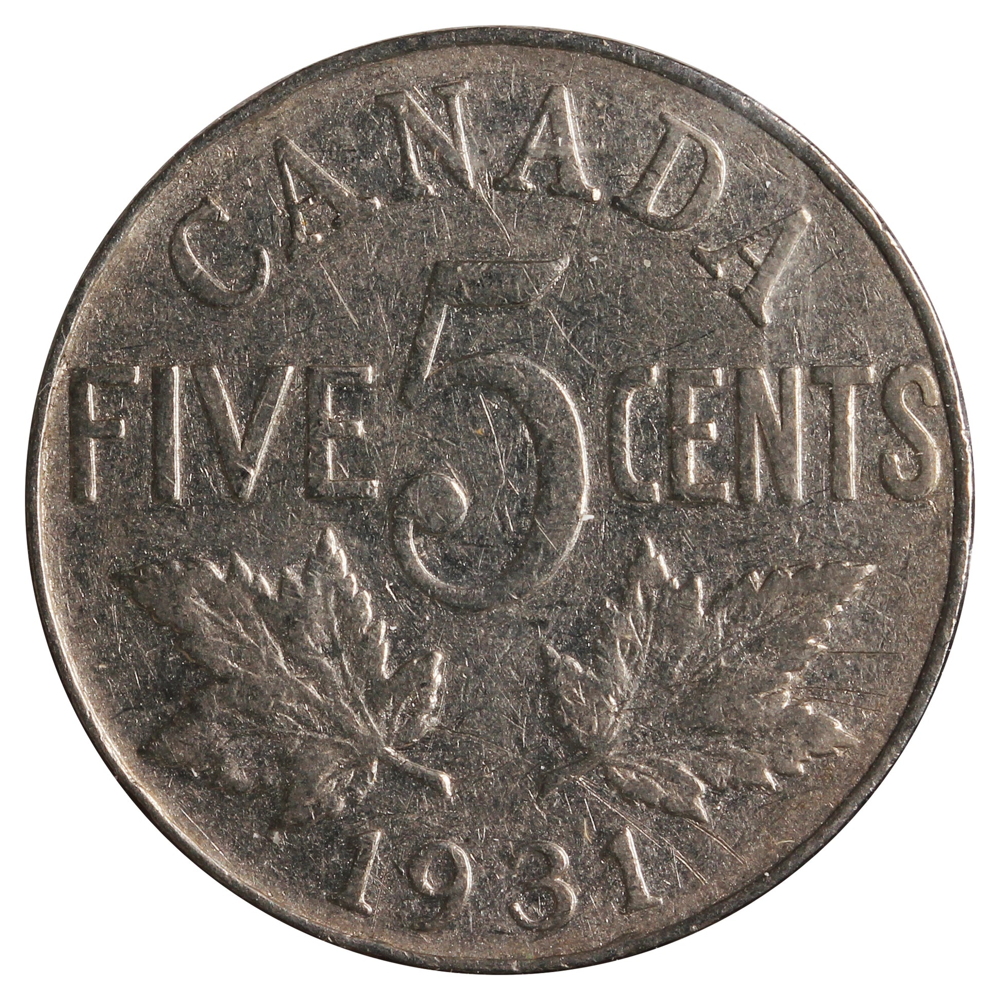 1931 Canada 5-Cents F-VF (F-15) Scratched, Cleaned or Impaired
