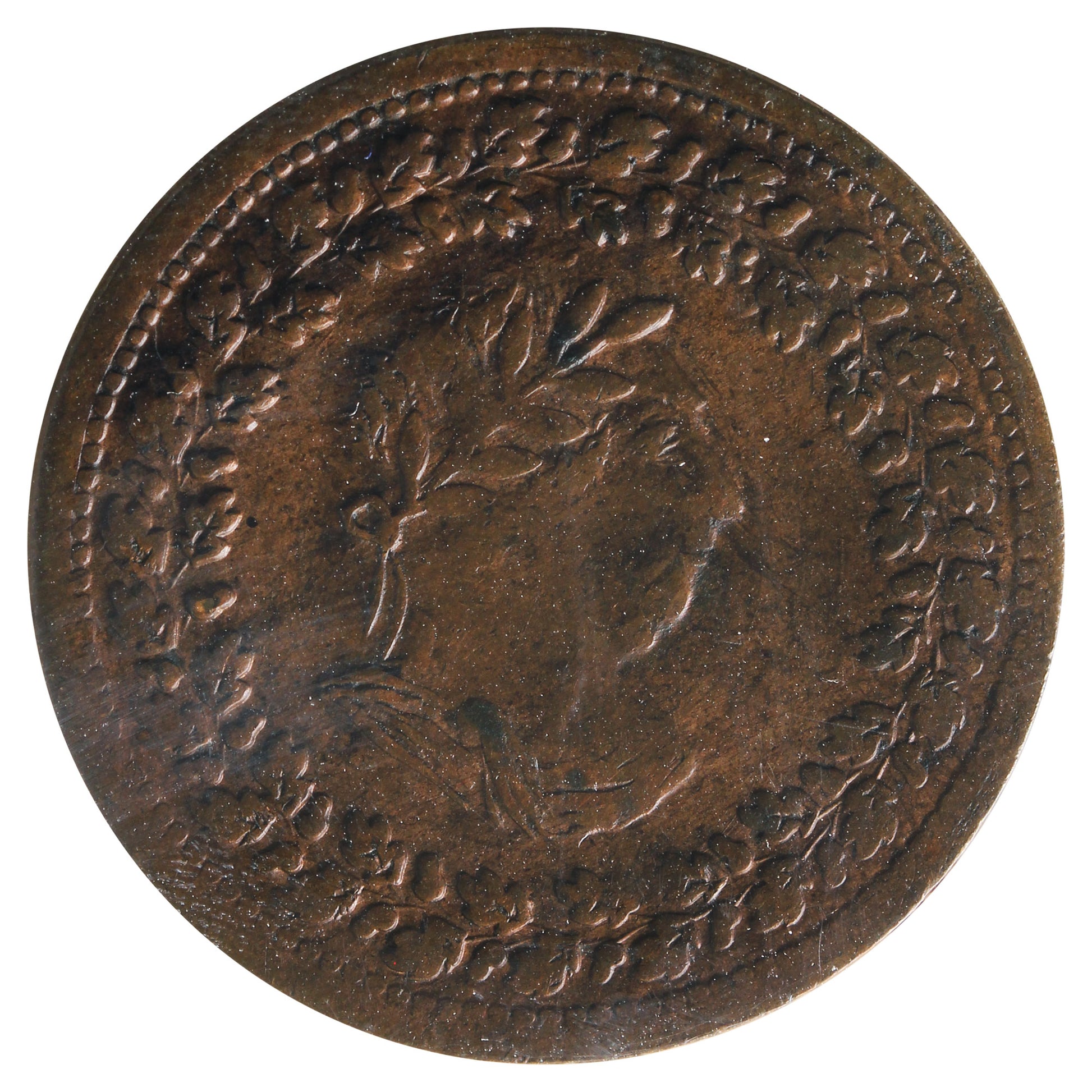 Around 1832, Joseph Tiffin, a Montreal grocer, imported a quantity of lightweight halfpenny copper tokens from England. These were copies of an anonymous English halfpenny struck in 1812 from dies cut by Thomas Halliday. Eventually, the banks refused to accept any of these lightweight tokens as currency and accepted them only for their scrap metal value.