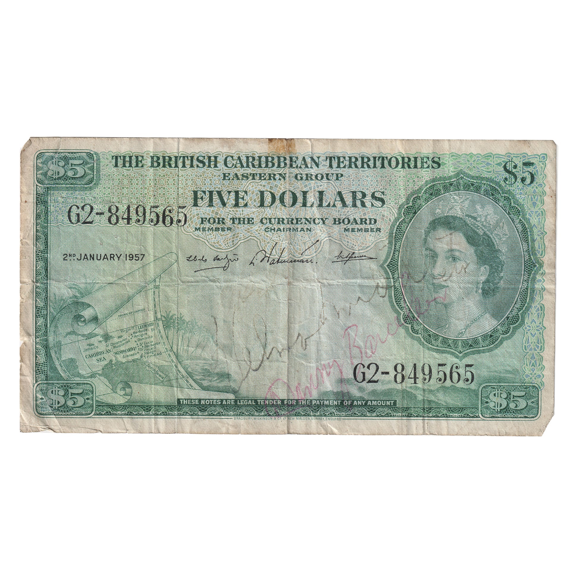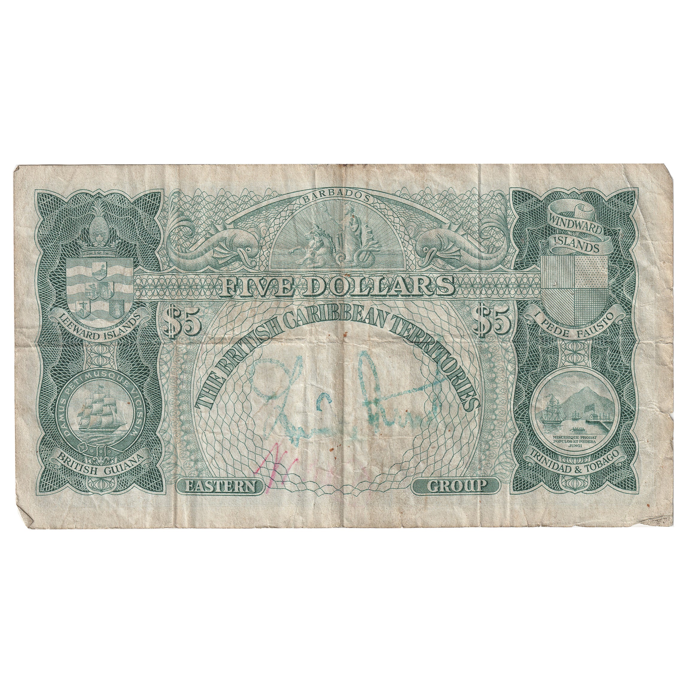 British Caribbean Territories 1957 5 Dollar Note, Pick #9b, VF (Dam'g)