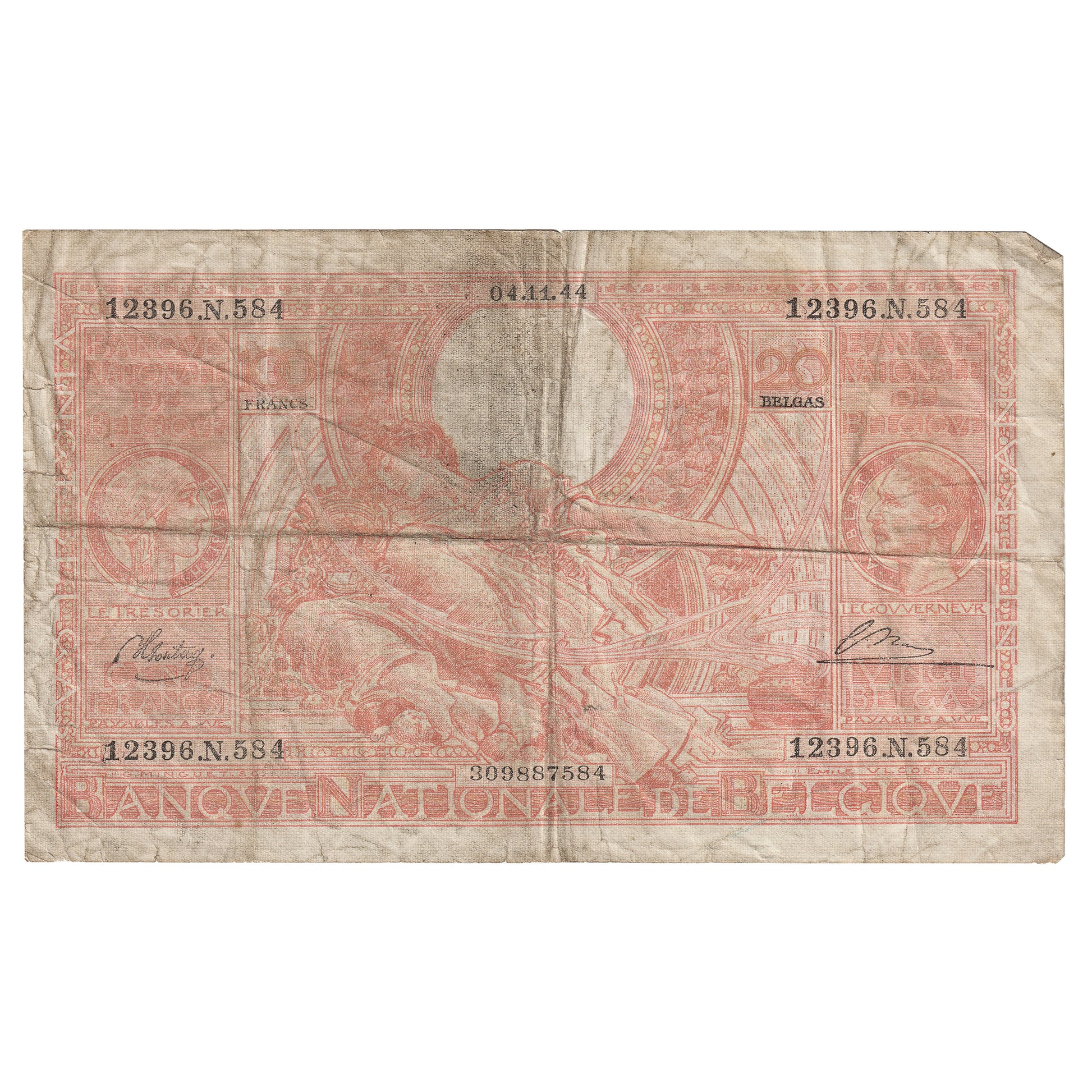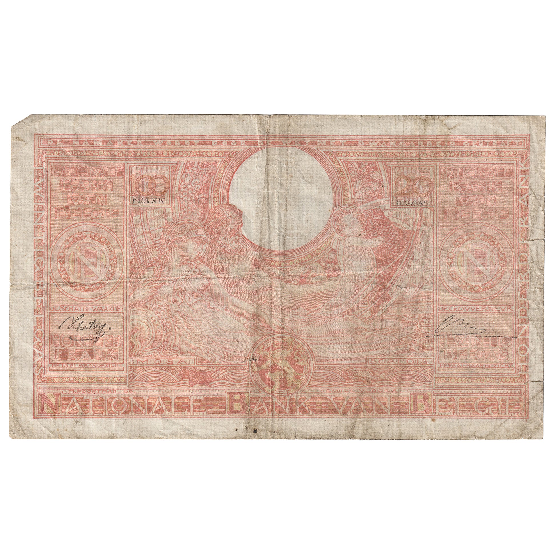 Belgium 1944 100 Francs-20 Belgas Note, Pick #114, VF (Damaged)
