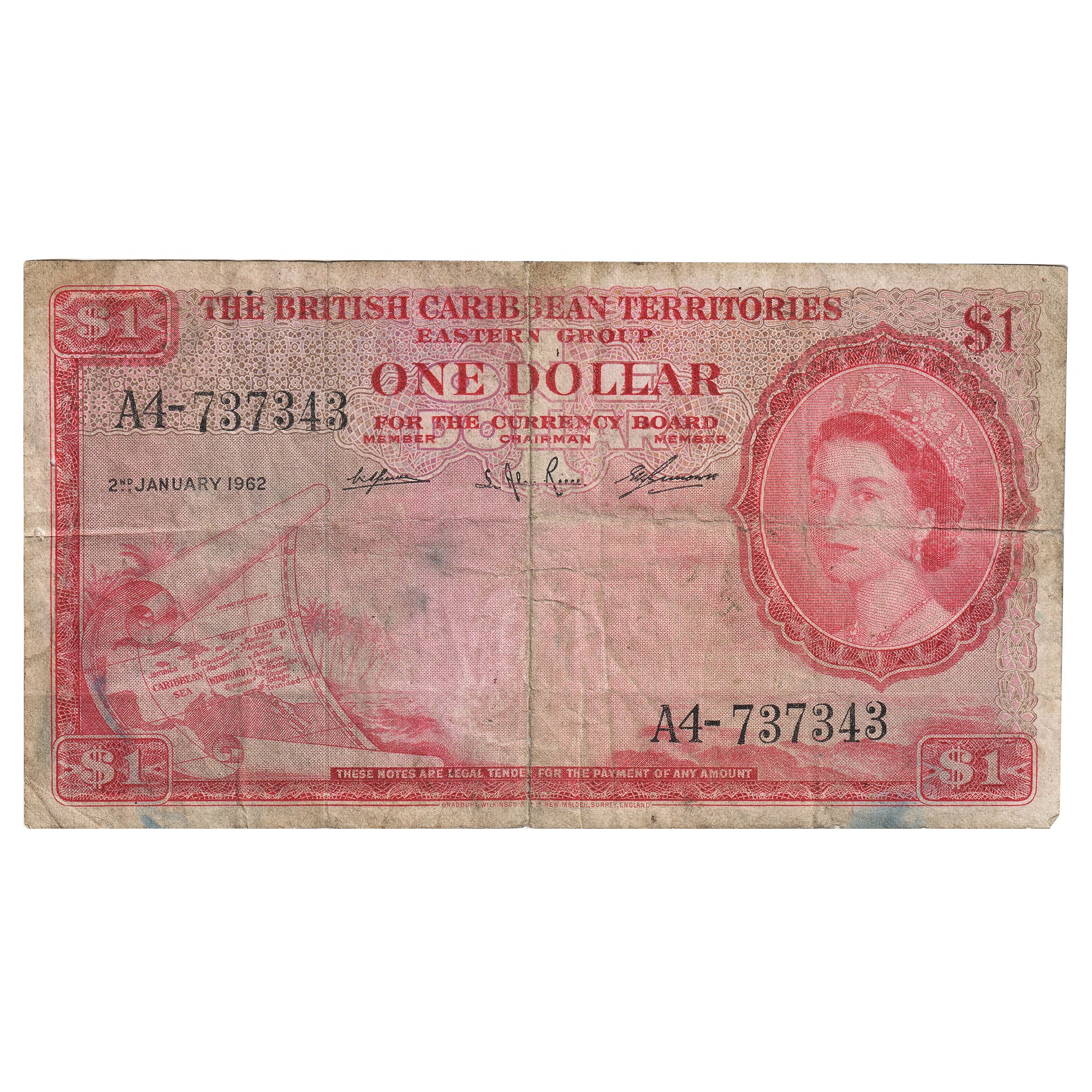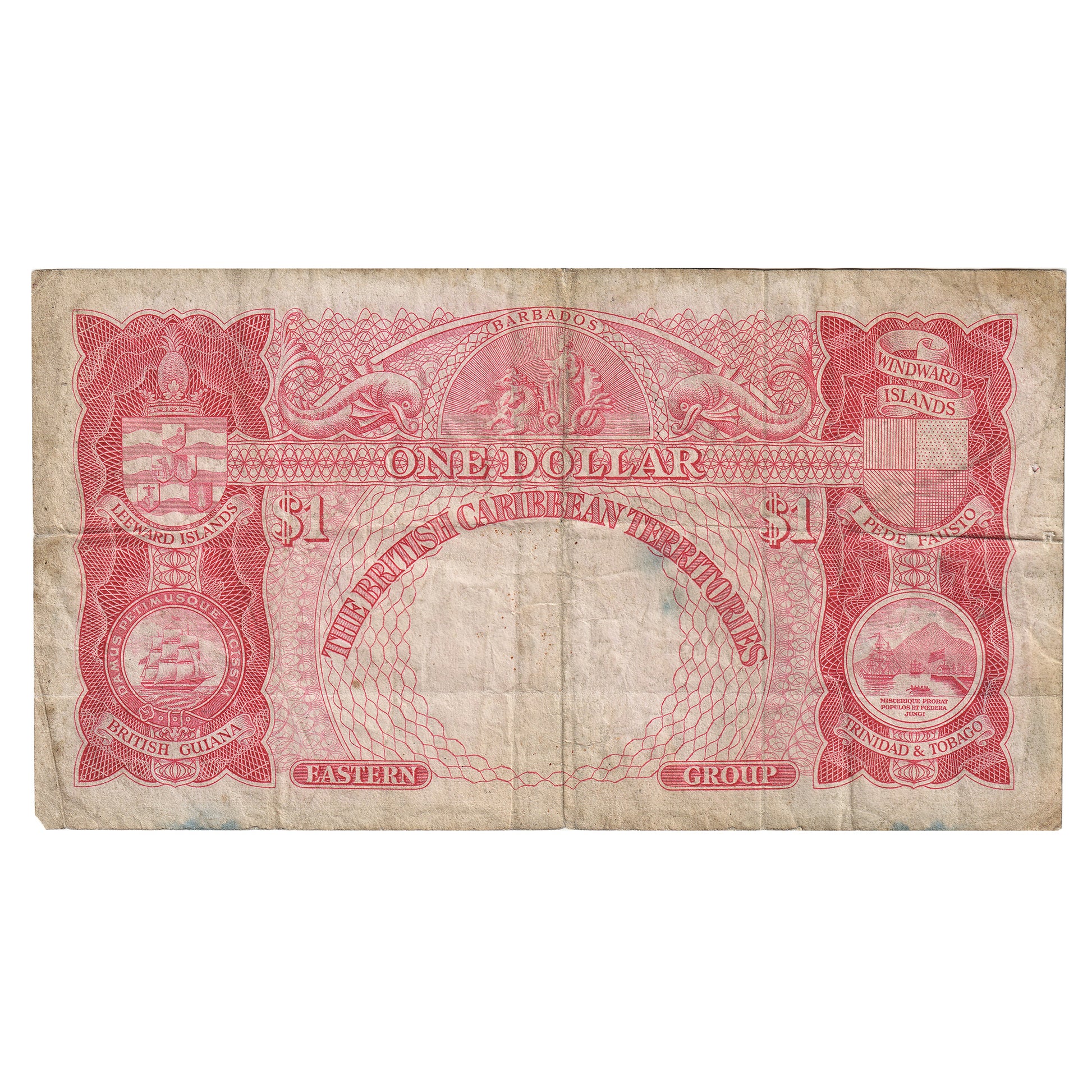 British Caribbean Territories 1962 1 Dollar Note Pick #7c, F (Damaged)