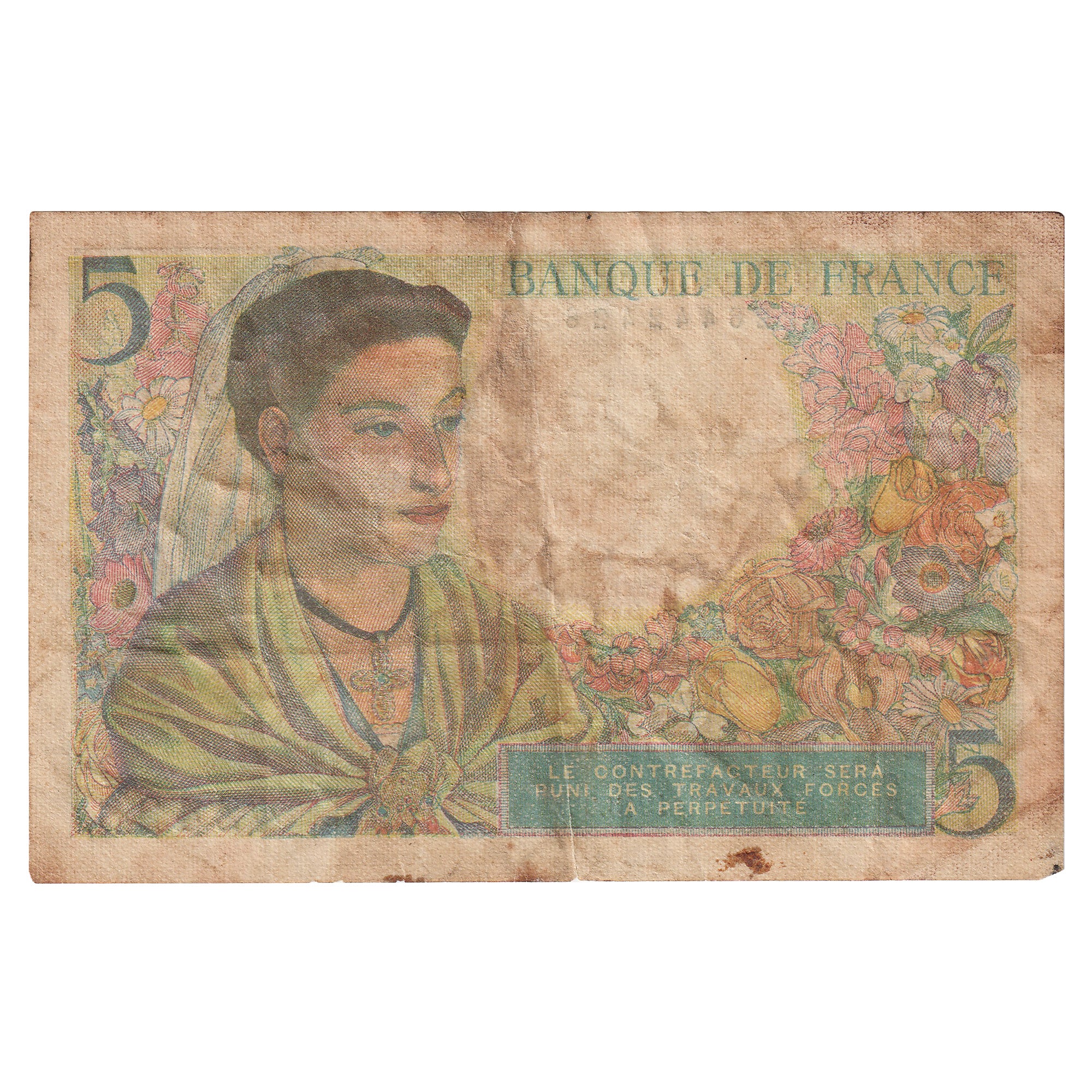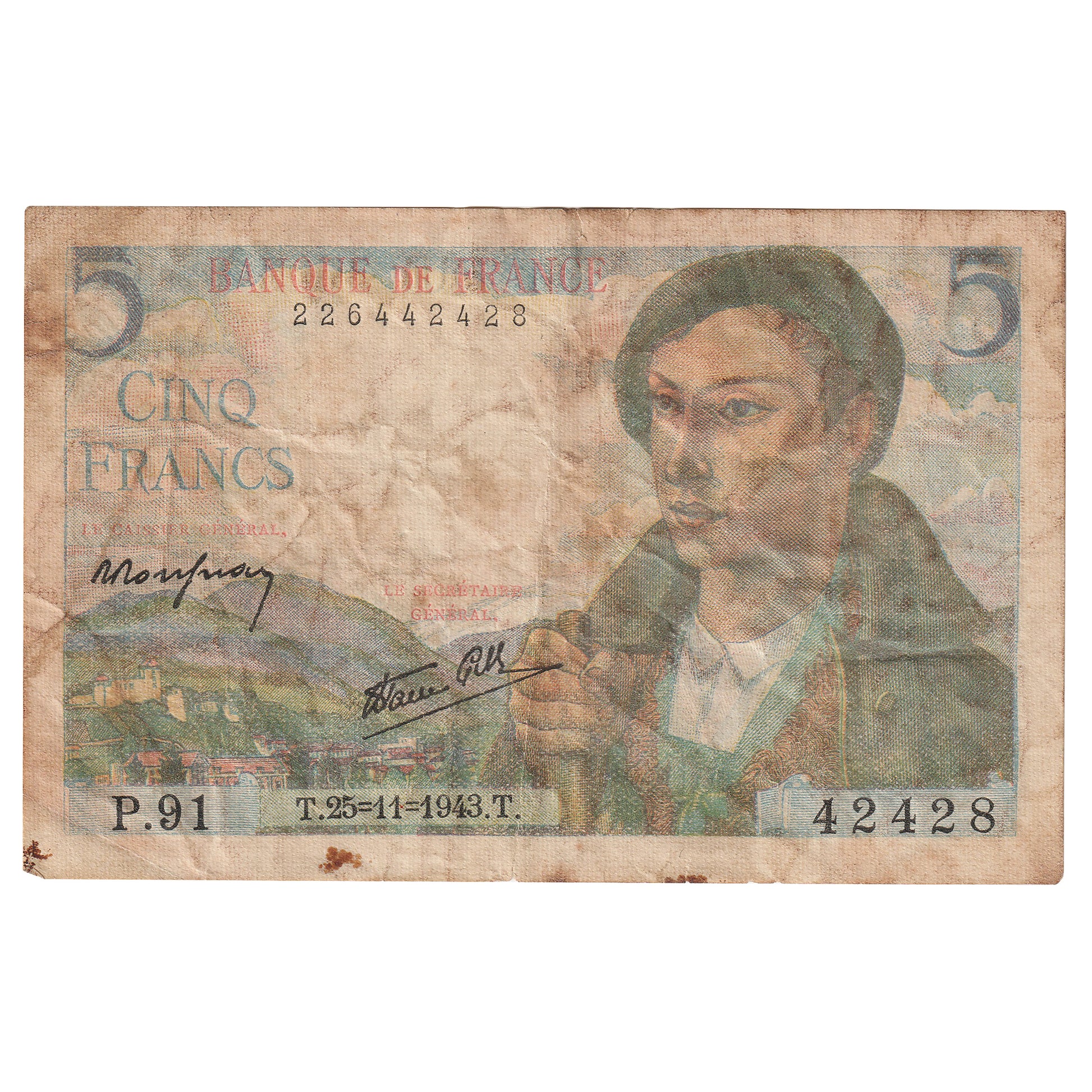 France 1943 5 Francs Note, Pick #98a, EF (Stains)