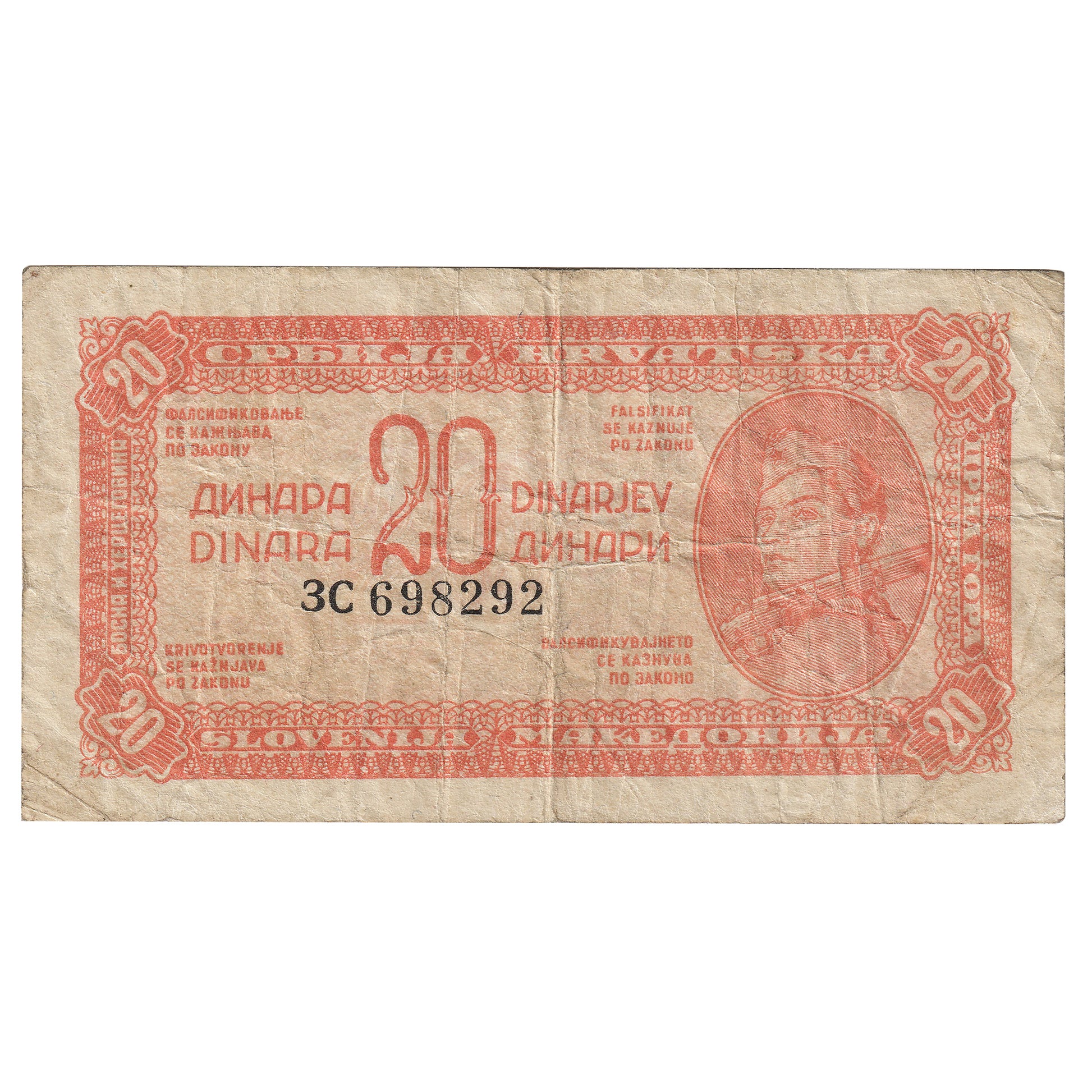 Yugoslavia 1944 20 Dinara Note, Pick #51b, F-VF