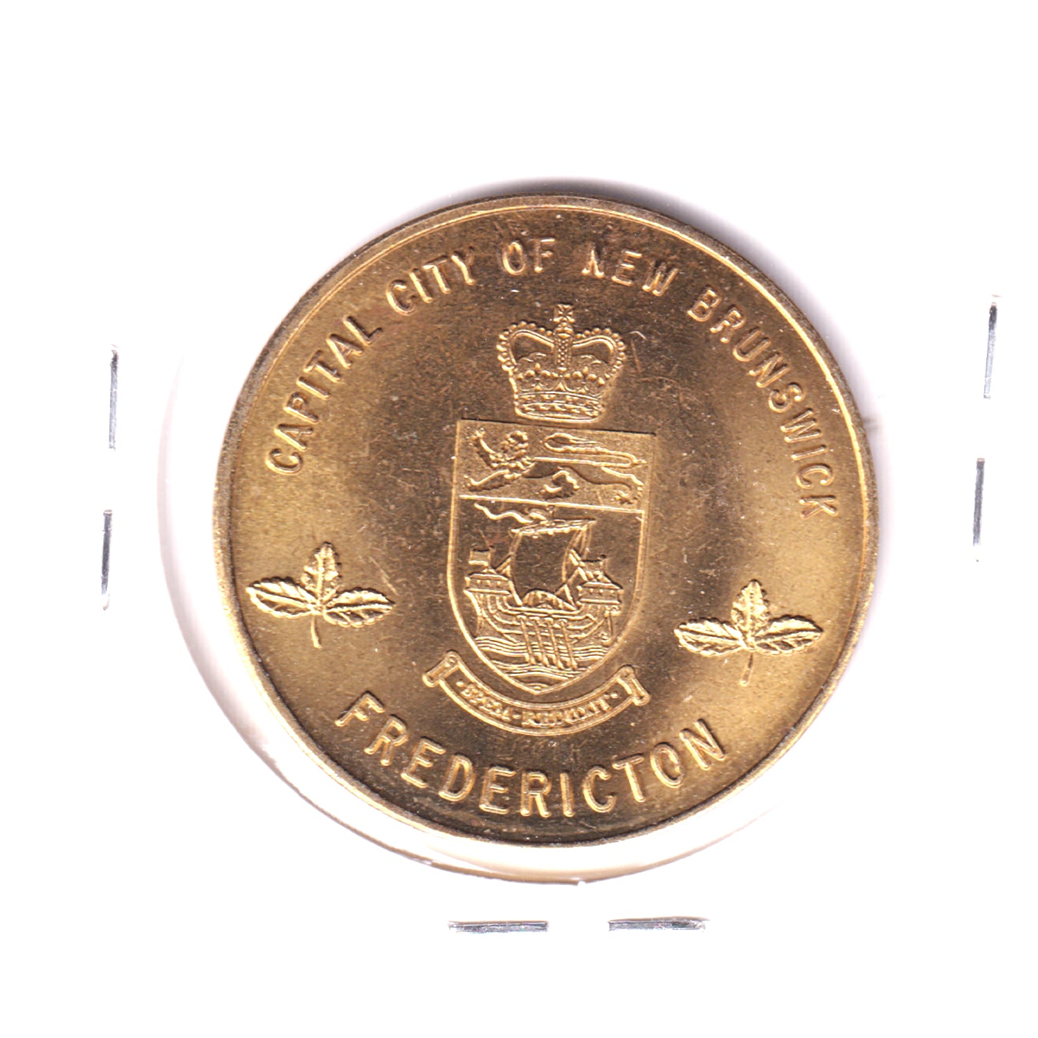 Canada’s Centennial token from Fredericton, New Brunswick, commemorates the 100th anniversary of Canadian Confederation in 1967. This beautifully crafted token features distinctive imagery that reflects the rich cultural heritage and history of Canada. On one side, you'll find symbols representing the nation’s unity and diversity, while the reverse showcases notable landmarks from Fredericton, celebrating its role in Canada's development. This token serves not only as a piece of history but also as a cherished keepsake for collectors and those who appreciate Canada's centennial legacy. Its intricate design and significance make it a valuable reminder of a pivotal moment in Canadian history.
