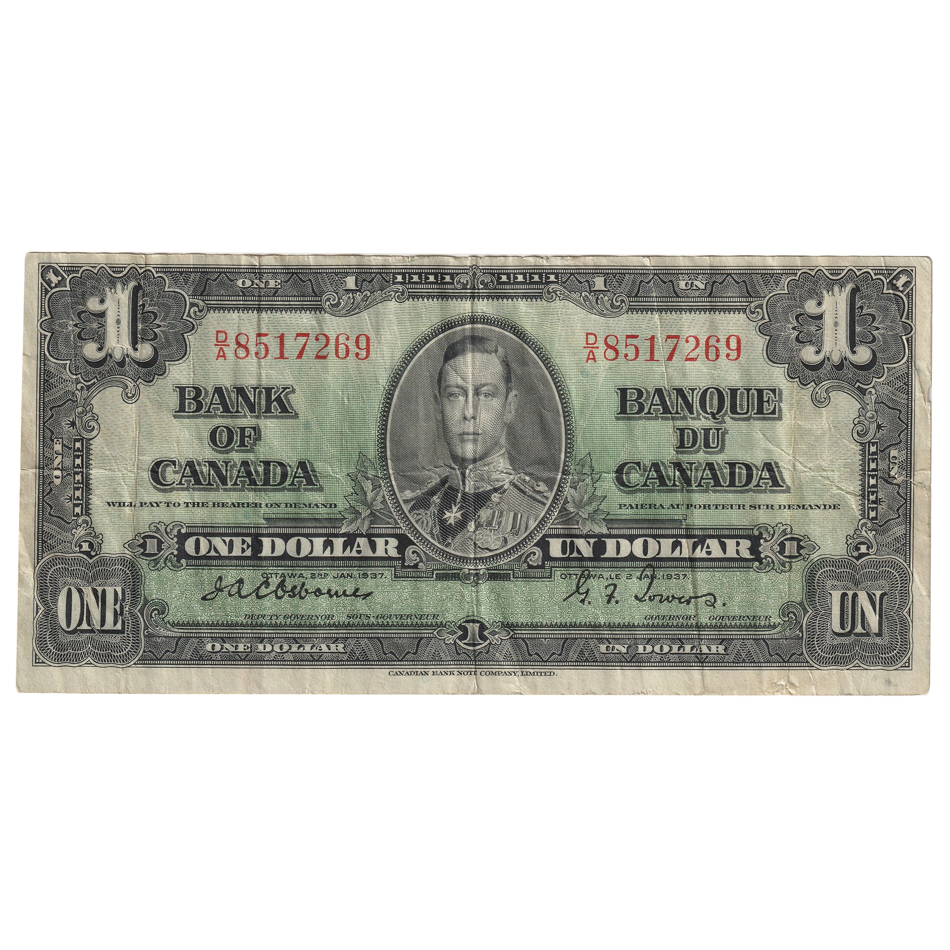 BC-21a 1937 Canada $1 Osborne-Towers, D/A. VF (Tear)