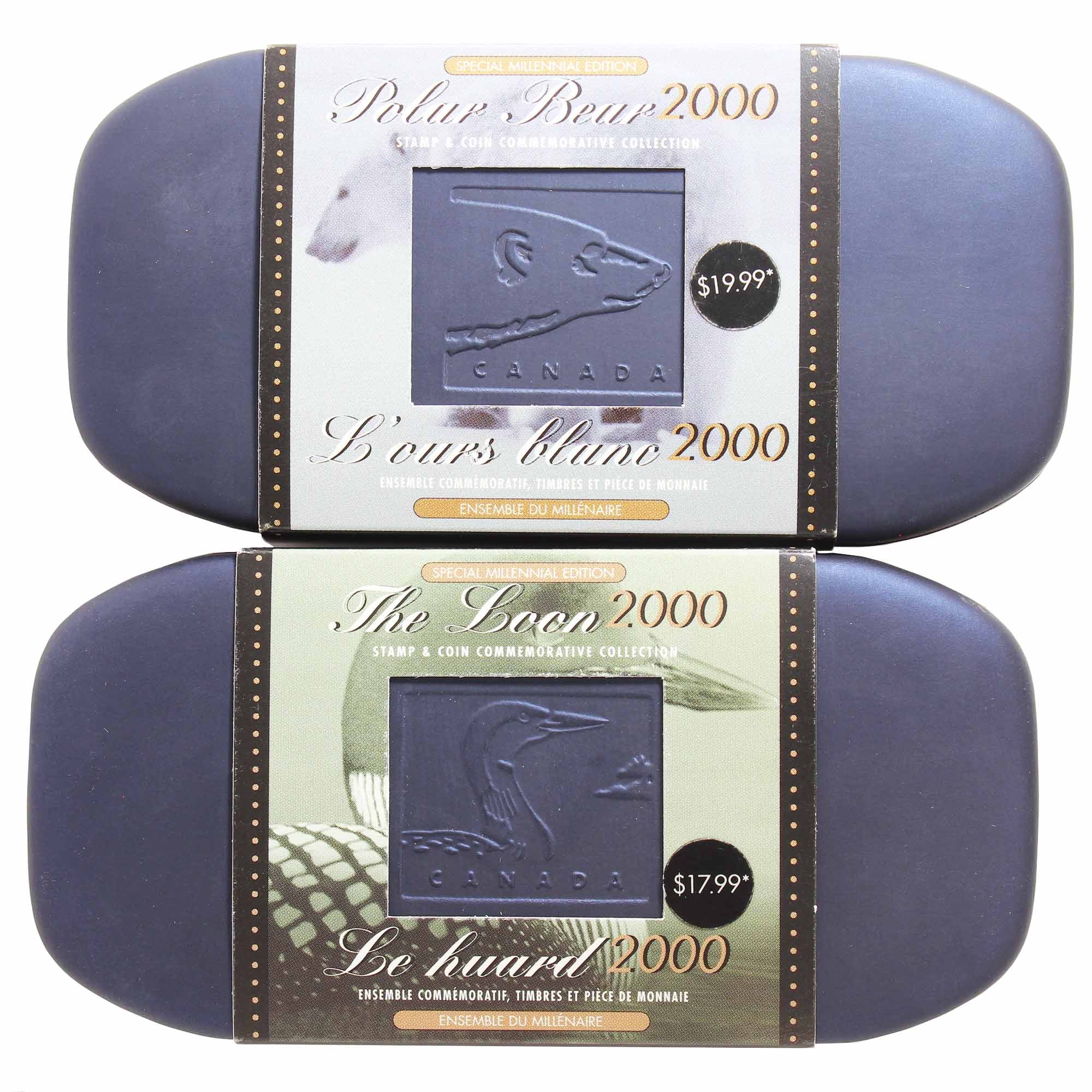 Pair of 2000 Canada Polar Bear & The Loon Coin and Stamp Sets (Impaired)
