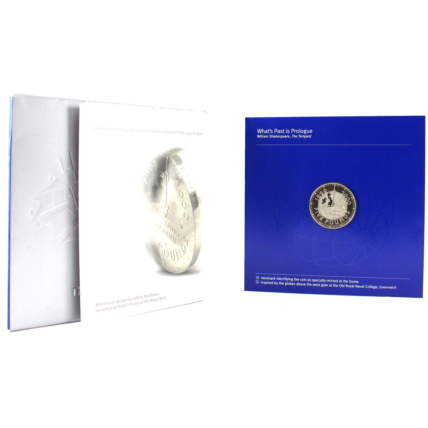 1999 Royal Mint Five Pound Uncirculated Millennium Coin. Outer cardboard sleeve has some light wear.