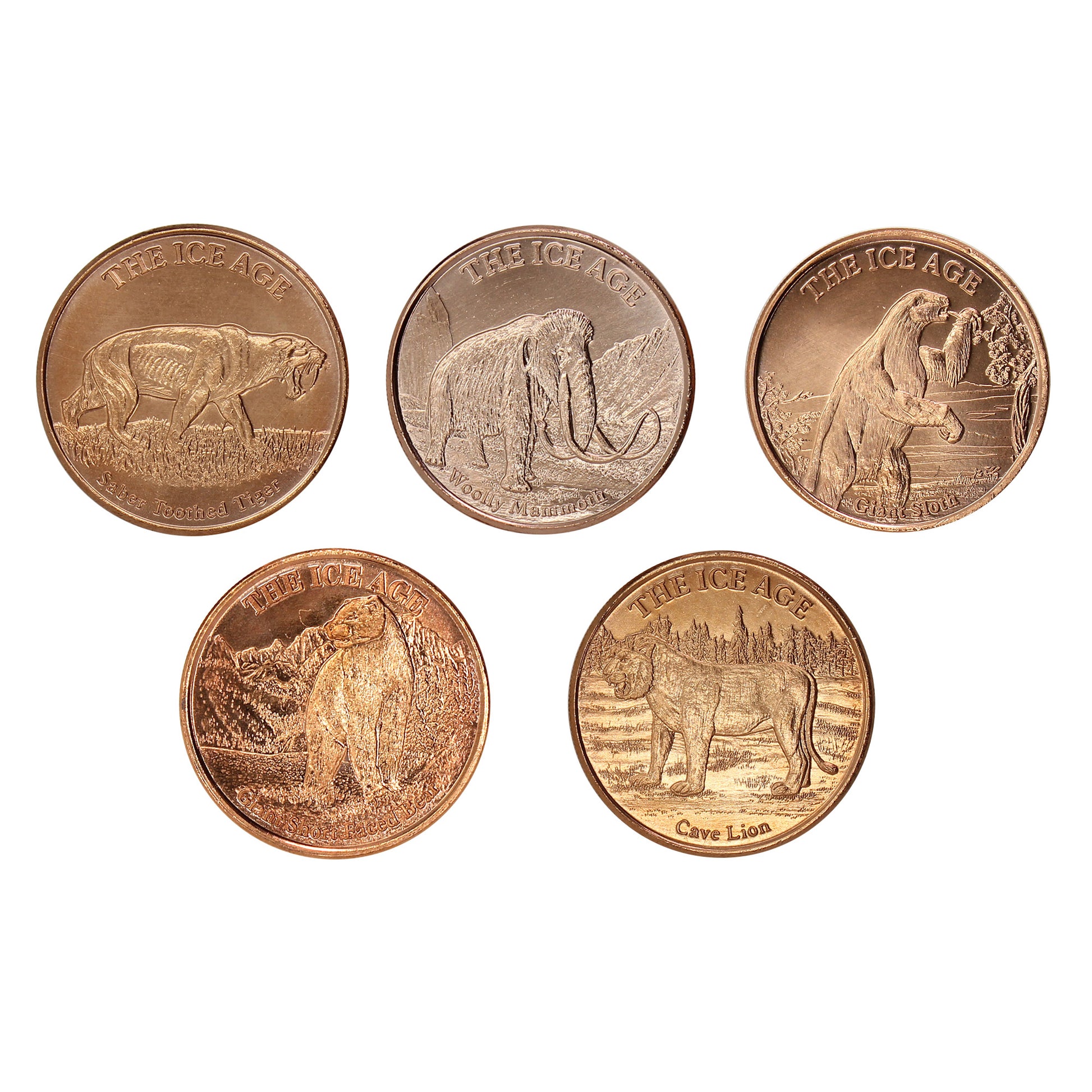 Lot of 5x Ice Age Themed 1oz. .999 Fine Copper Rounds, 5Pcs.