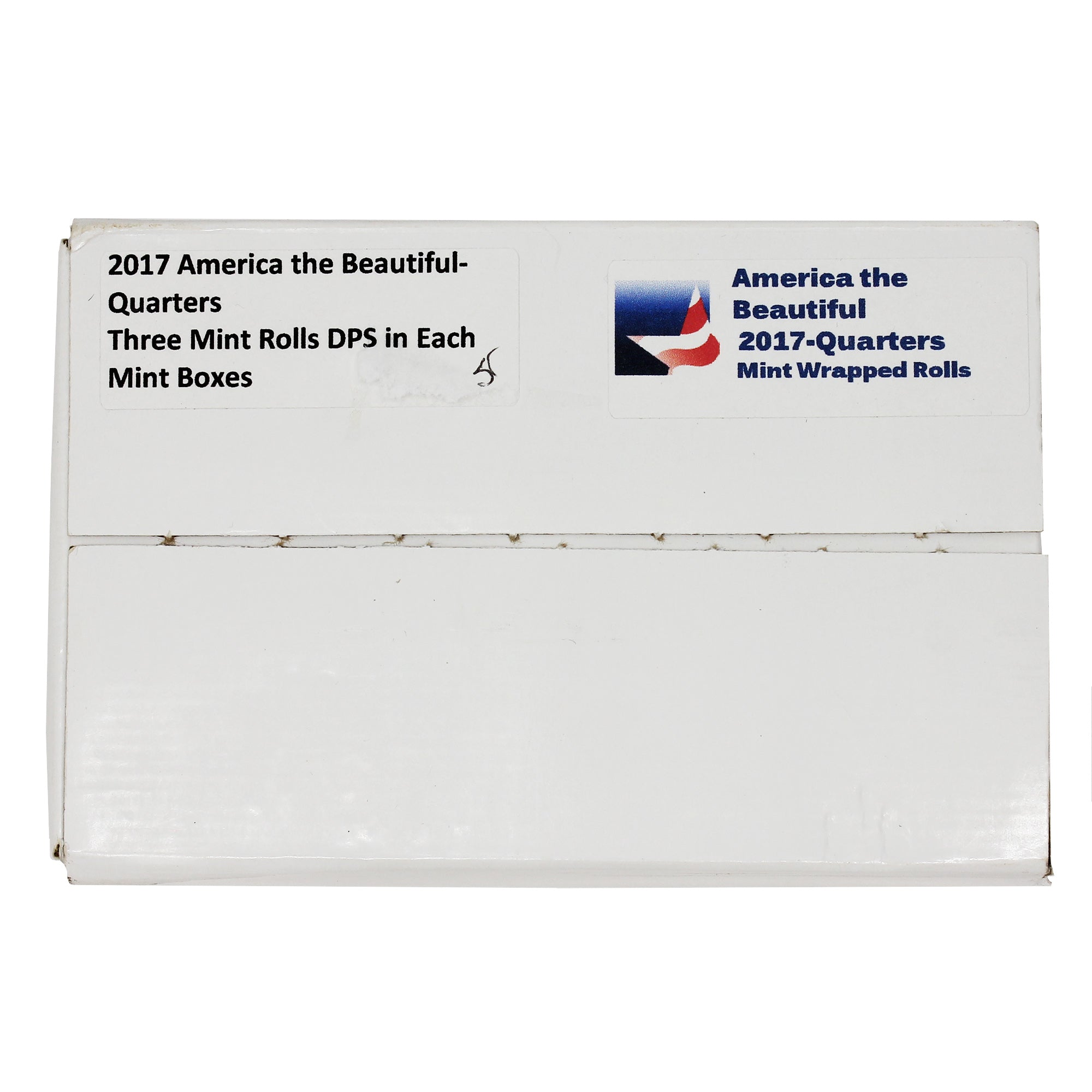 Set of 3x 2017 PDS USA George Rogers Clark (Indiana) National Parks Quarter Rolls, Unopened in Box. The box is bent on one corner. Includes one roll from each mint.