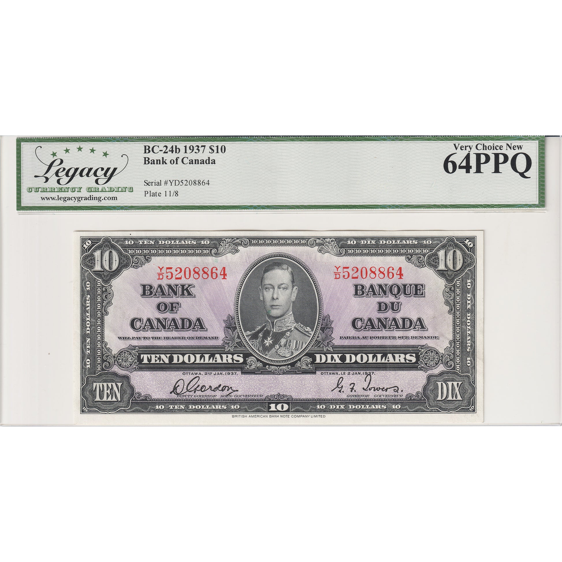 BC-24b 1937 Canada $10 Gordon-Towers, Y/D Legacy Certified CUNC-64 PPQ