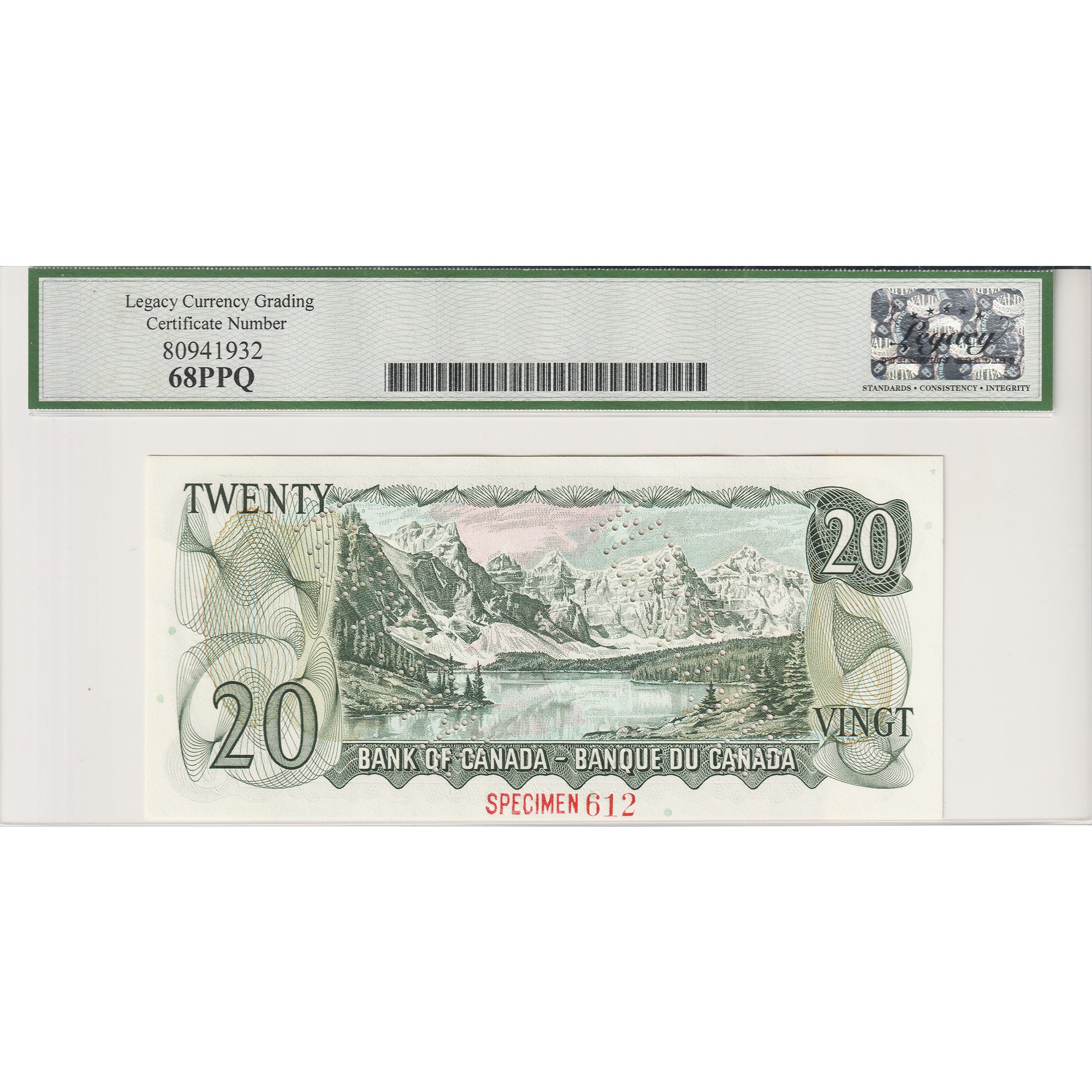 BC-50aS 1969 Canada $20 B-R, Specimen 612, EA Legacy Certified GUNC-68 PPQ Cancelled