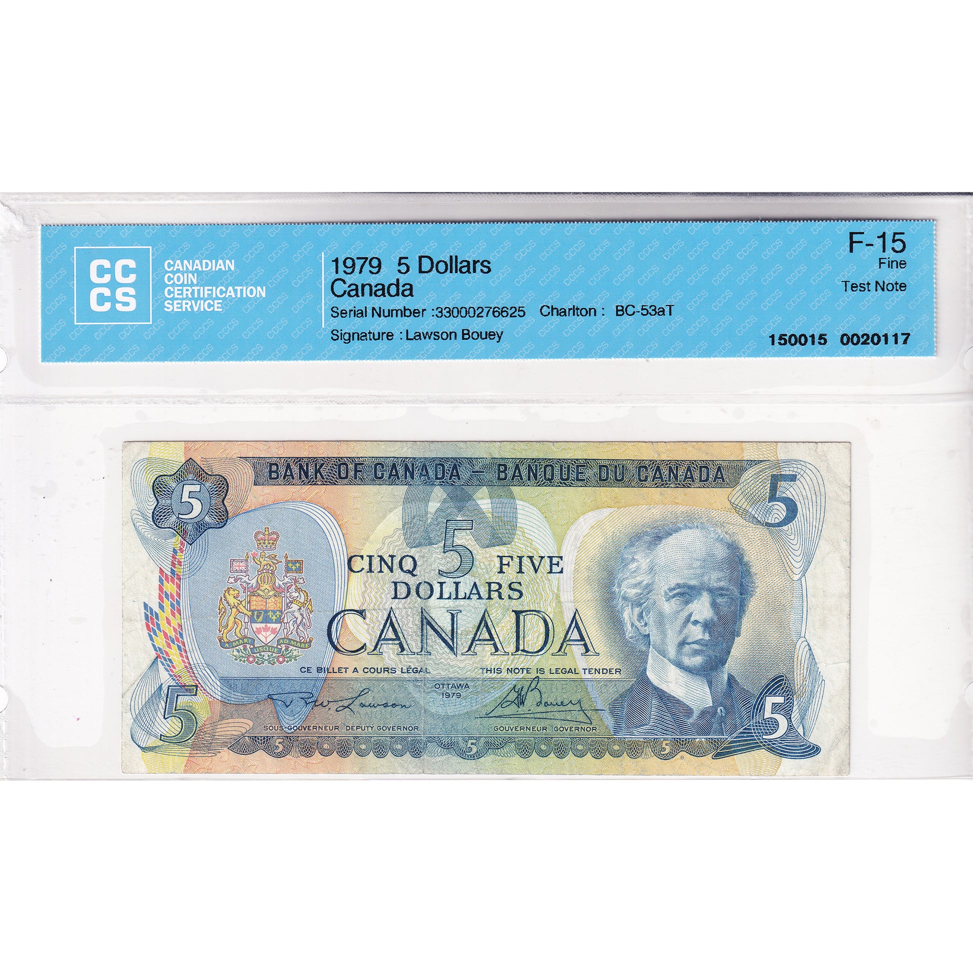 BC-53aT 1979 Canada $5 Lawson-Bouey, Test Note, 300 CCCS Certified F15