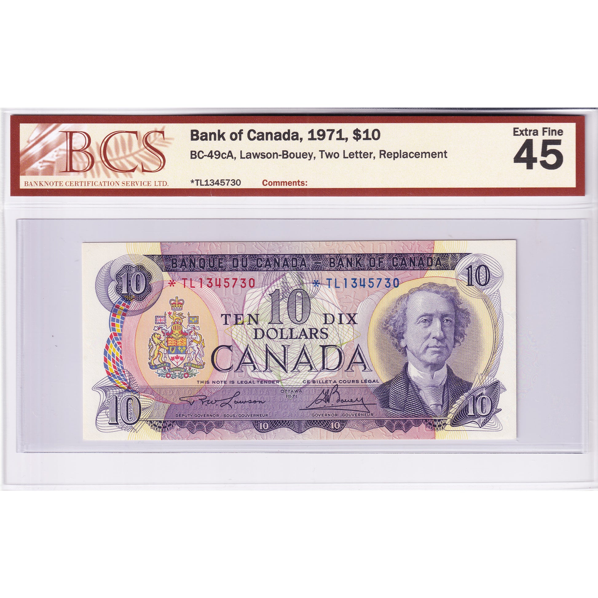 BC-49cA 1971 Canada $10 Lawson-Bouey, Two Letter, Replacement, *TL BCS Certified EF-45