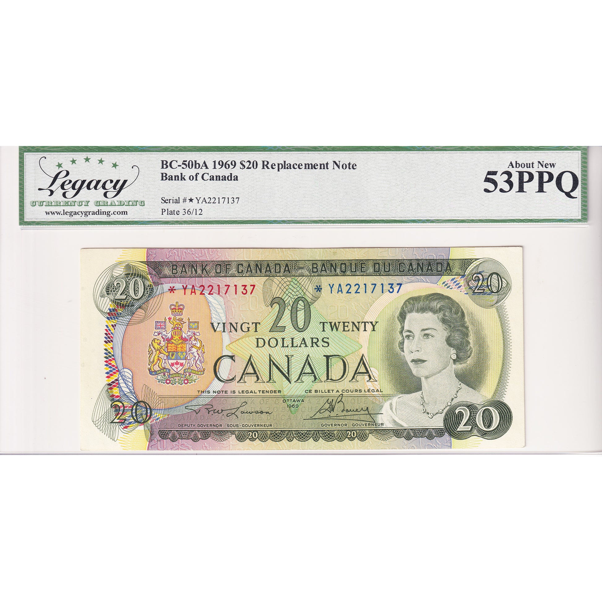 BC-50bA 1969 Canada $20 Lawson-Bouey, Replacement, *YA Legacy Certified AU-53 PPQ