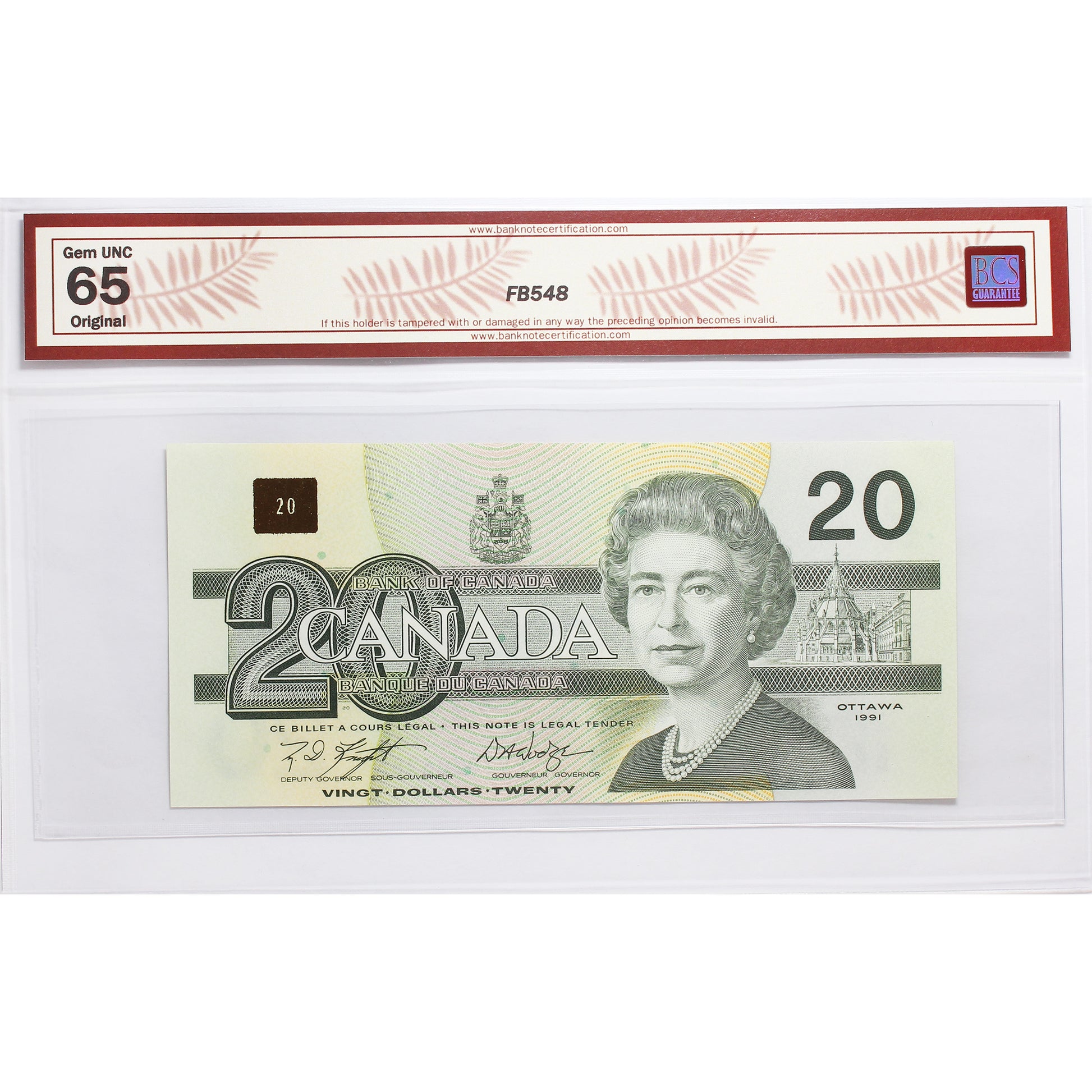BC-58d 1991 Canada $20 Knight-Dodge, EVY BCS Certified GUNC65 Original