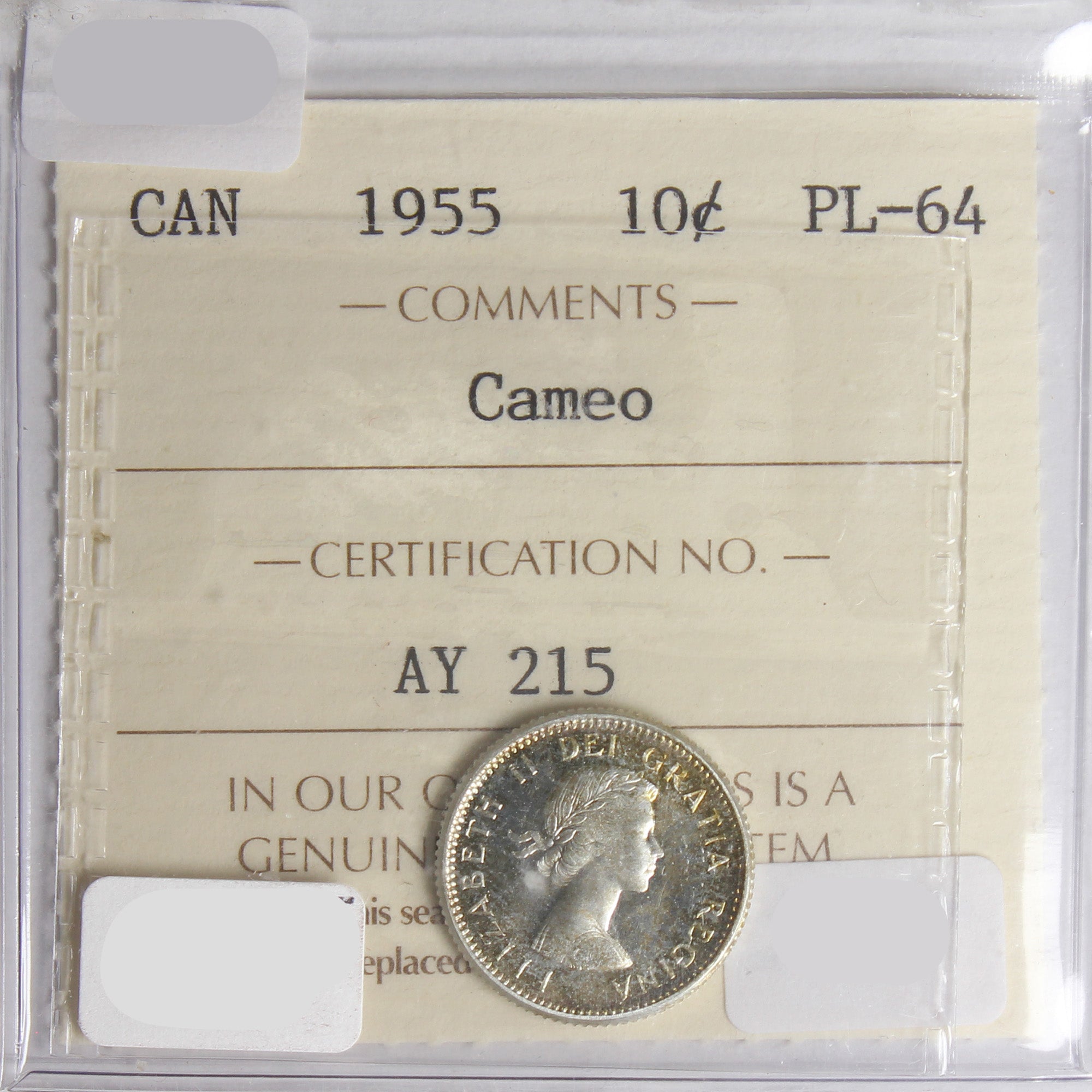 1955 Canada 10-cents ICCS Certified PL-64 Cameo