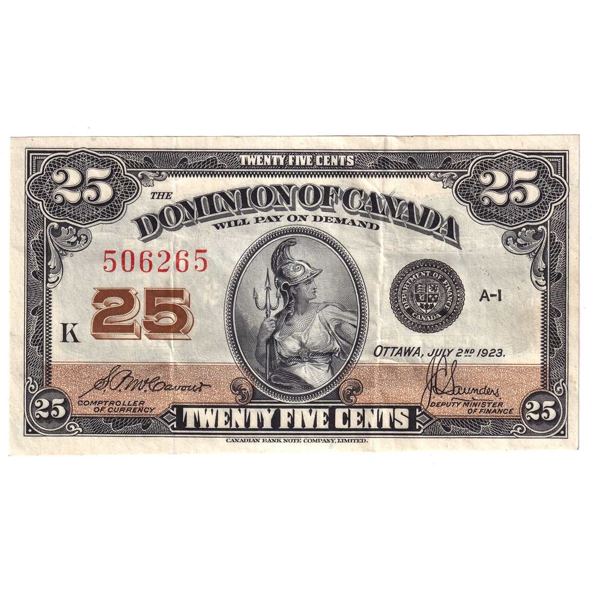 DC-24c 1923 Dominion of Canada 25 cent Shinplaster McCavour-Saunders, EF