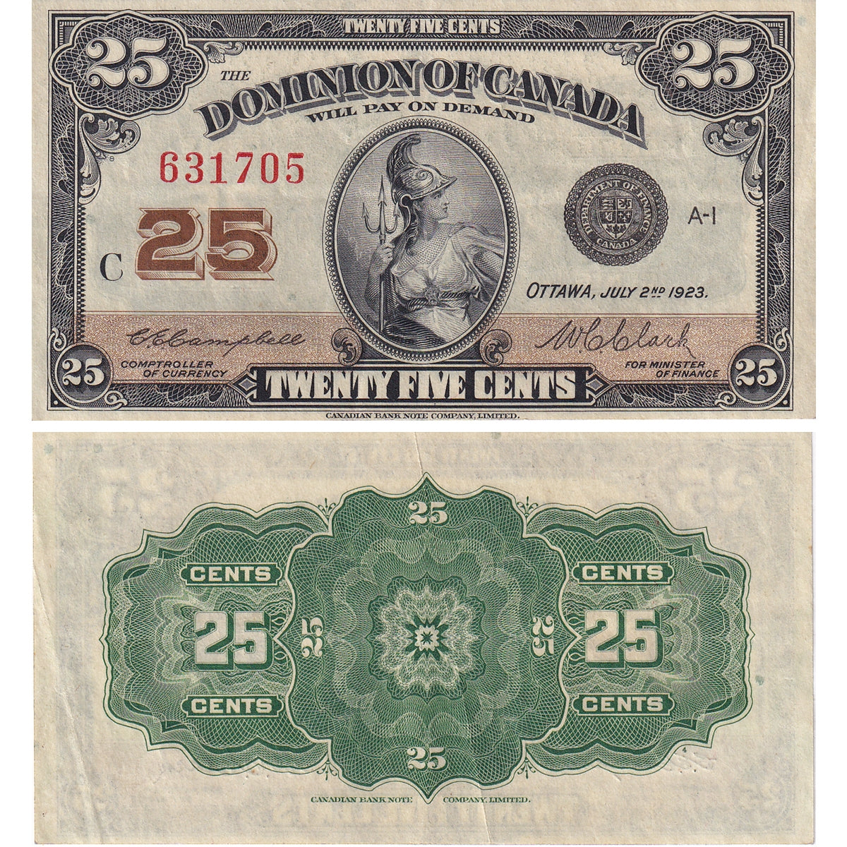 DC-24d 1923 Dominion 25 cent Shinplaster Campbell-Clark, EF