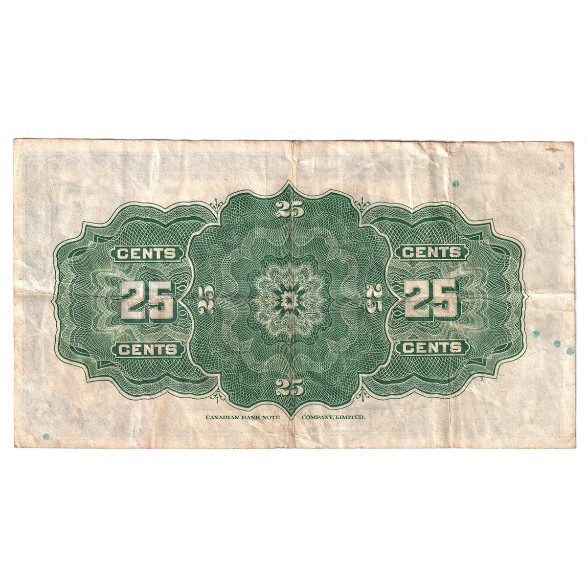 This particular DC-24d Dominion 25c Shinplaster omits the inscription "AUTHORIZED BY R.S.C. CAP 31" above the signature on the left (present on the DC-24a variety).