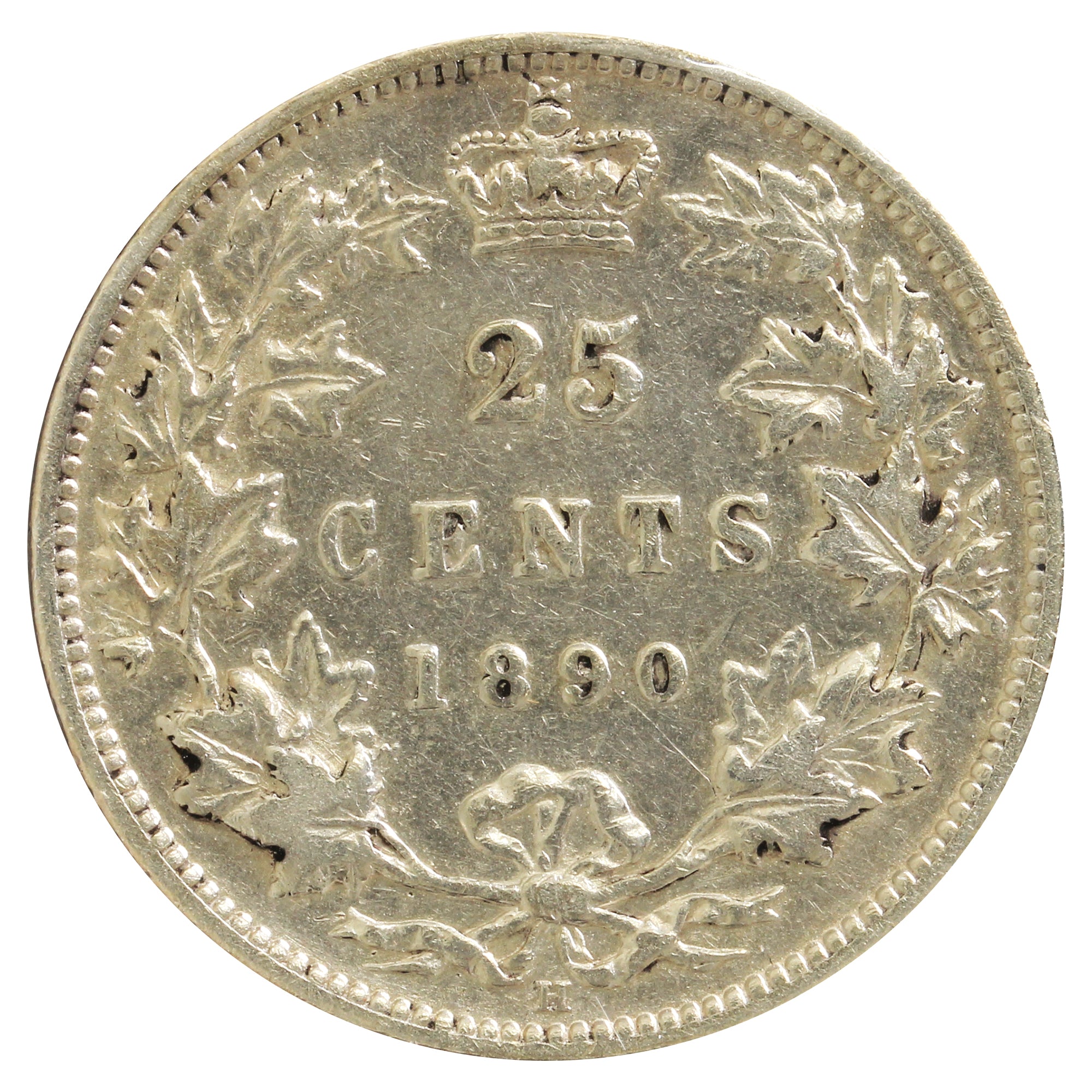1890H Canada 25-cents Very Fine (VF20) cleaned