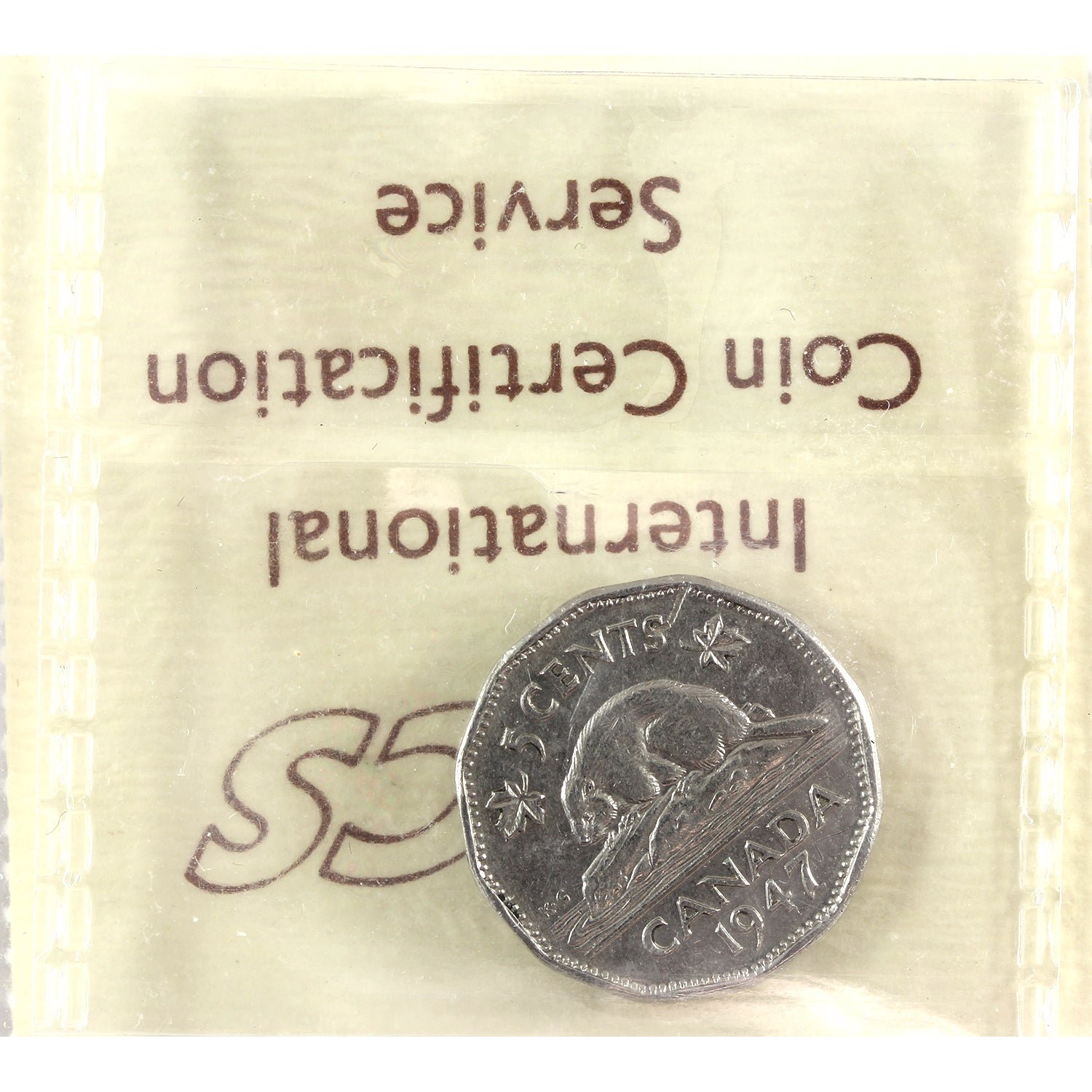1947 Dot Canada 5-cents ICCS Certified VF30 (scratch)