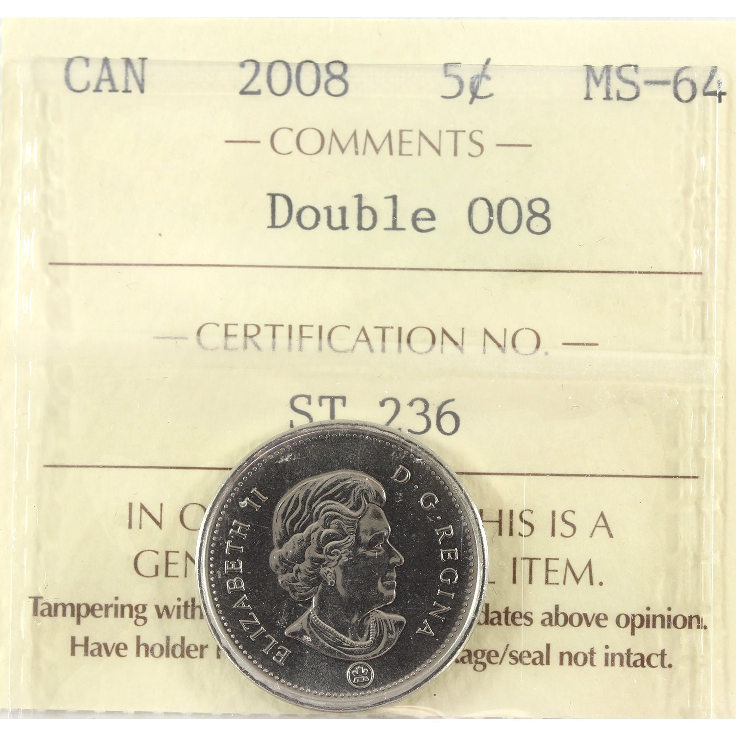 2008 Double 008 Canada 5-cents ICCS Certified MS64