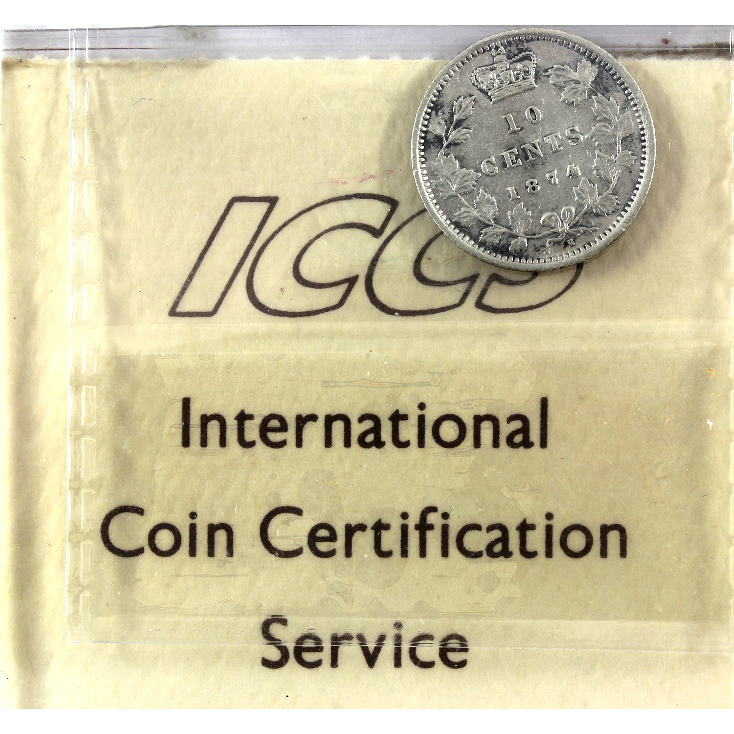 1874H Canada 10-cents ICCS Certified VF30 (cleaned)