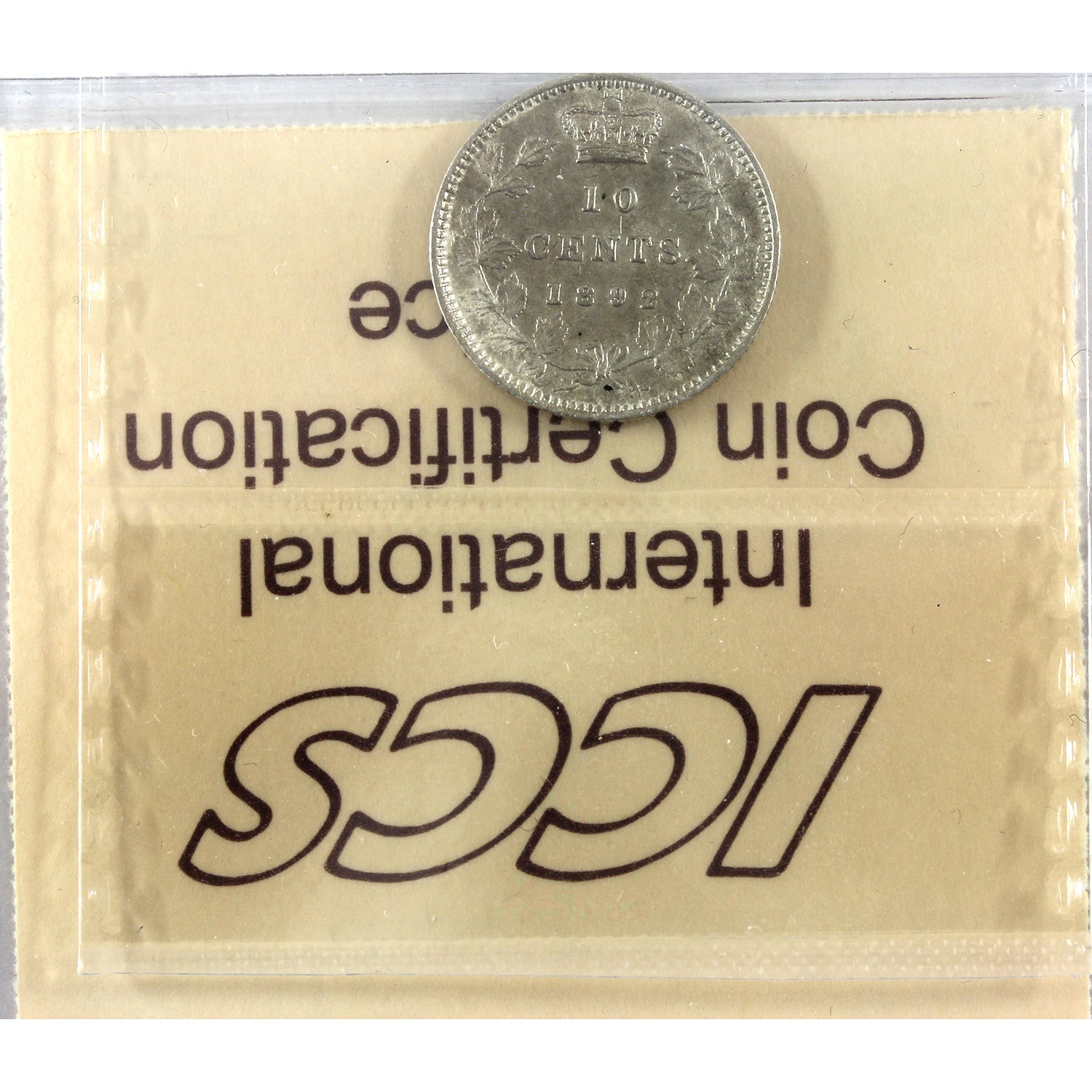 1892 Small 9, Obv. 5 Canada 10-cents ICCS Certified VF20 (cleaned)