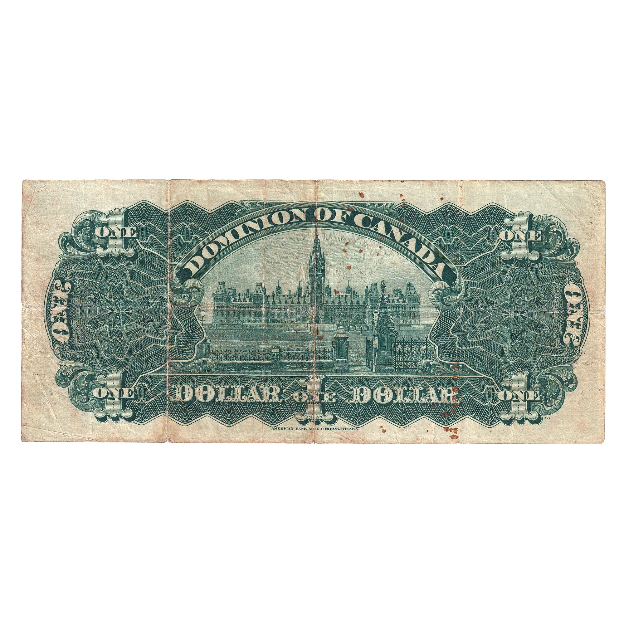 DC-18b 1911 Dominion of Canada $1 Various-Boville, Green Line, Series F, F-VF (dam'g)
