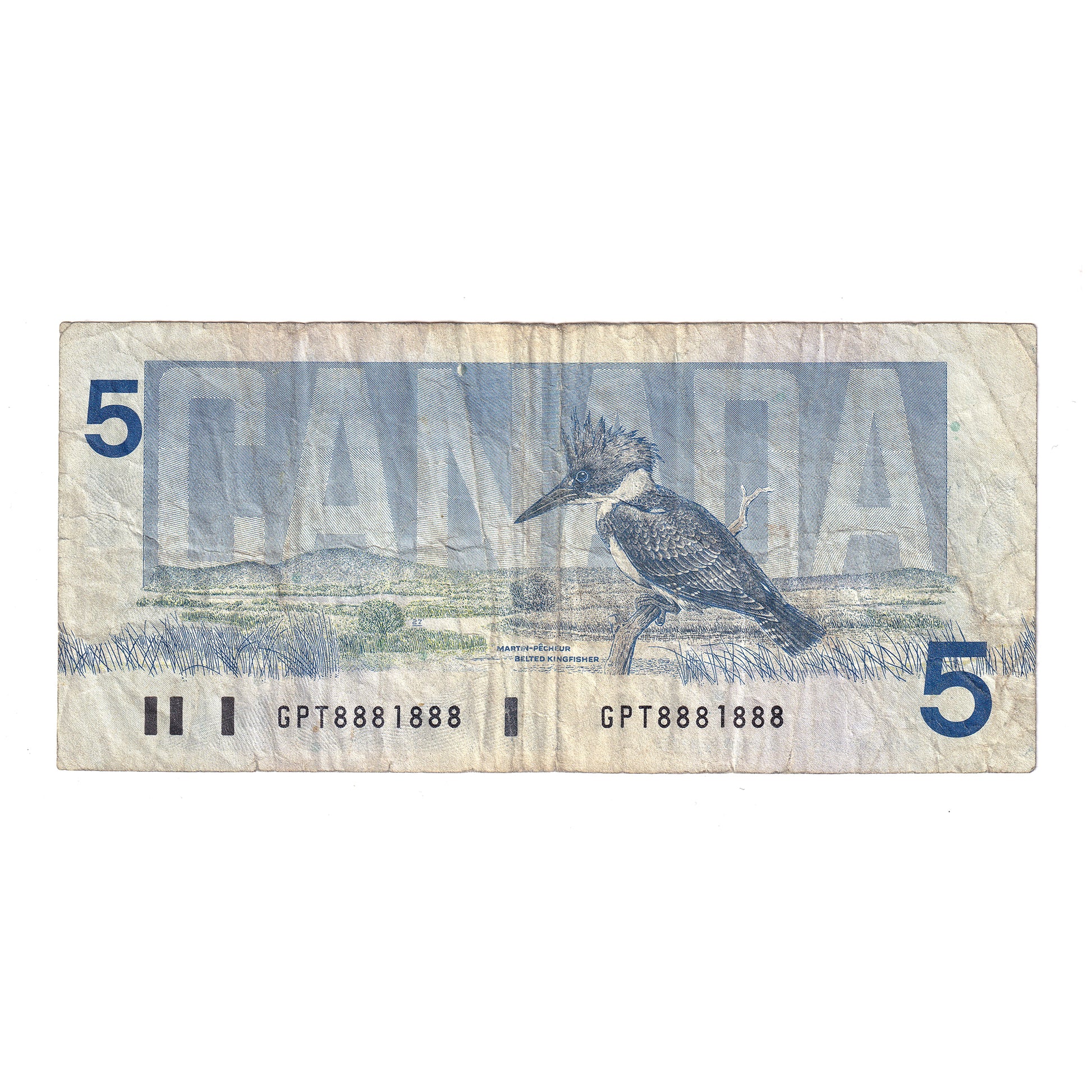 BC-56c 1986 Canada $5 Bonin-Thiessen, 2 Digit RADAR, GPT8881888, VG