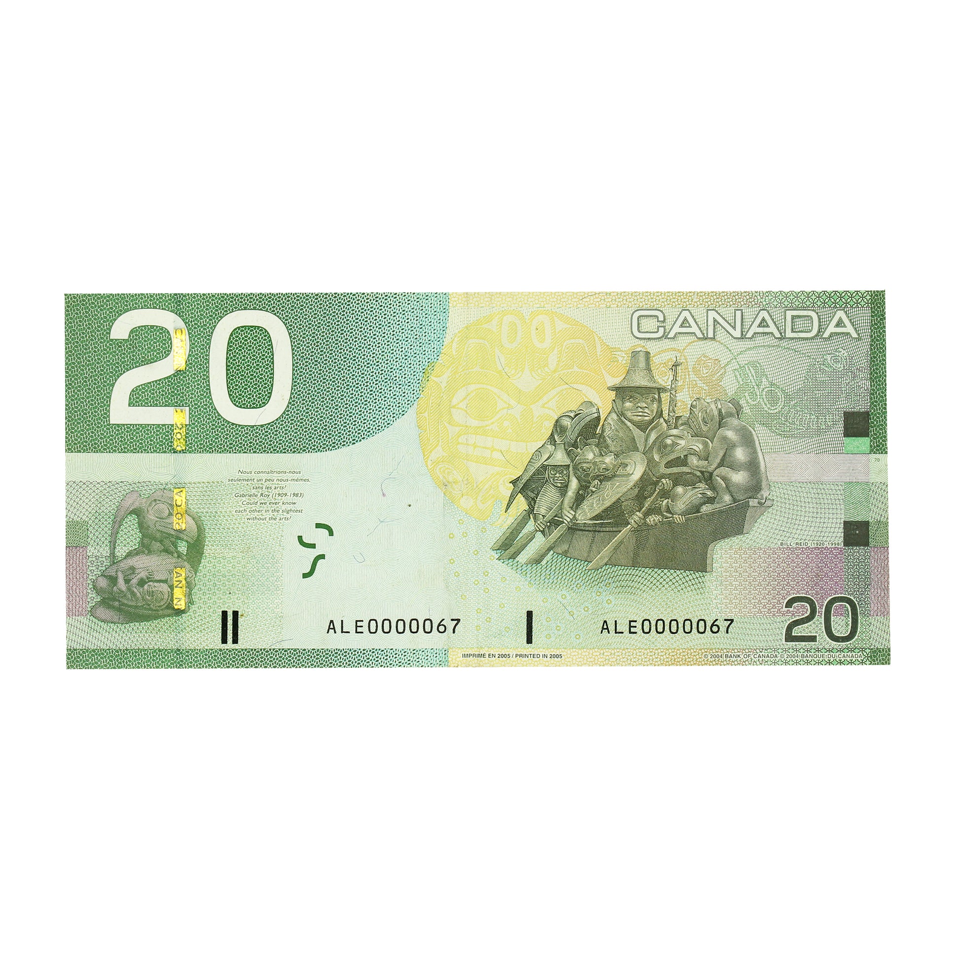 BC-64a-N5-iii 2005 Canada $20 Jenkins-Dodge, Low Serial Number, ALE0000067, VF-EF