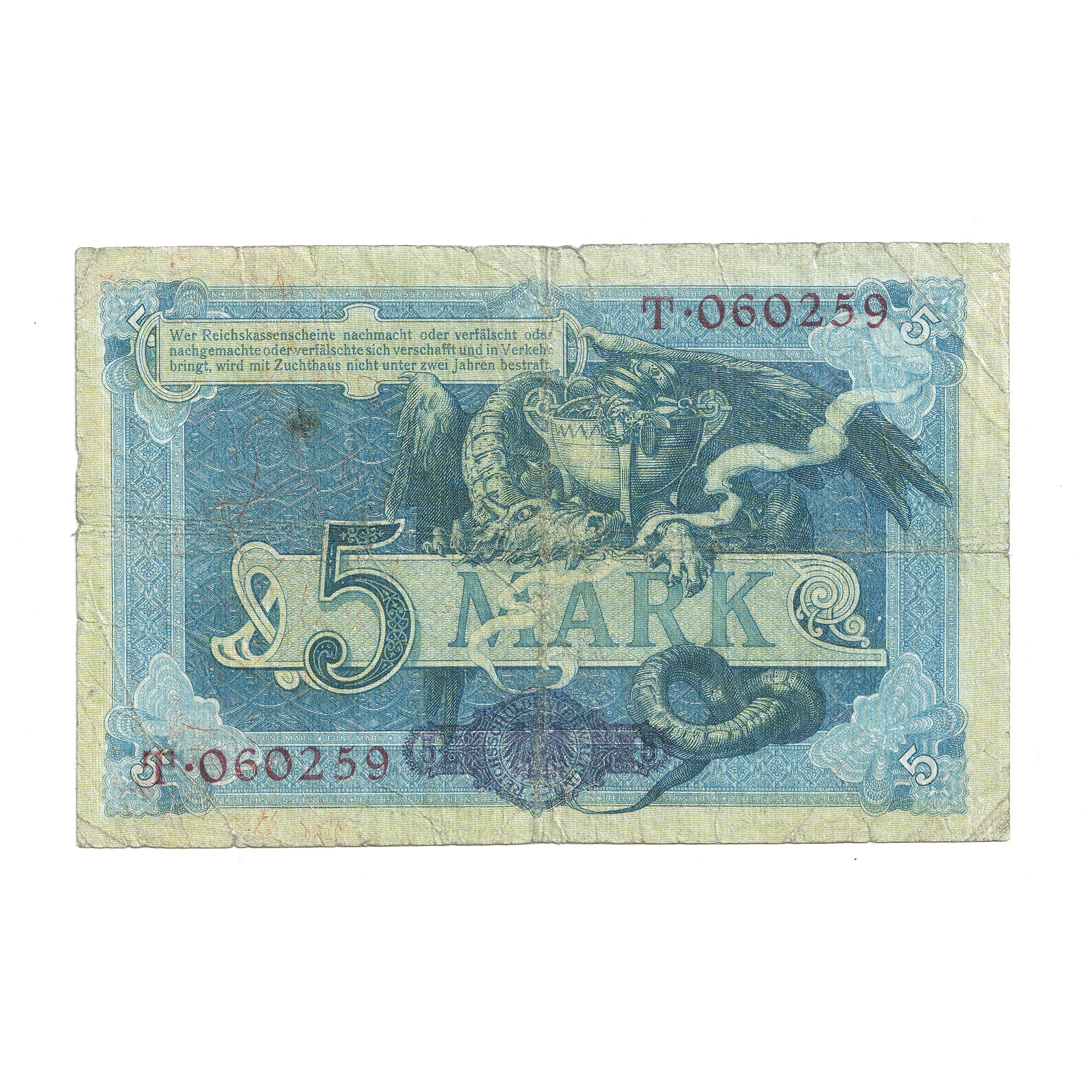 Germany 1904 5 Mark Note, Pick #8, CIRC