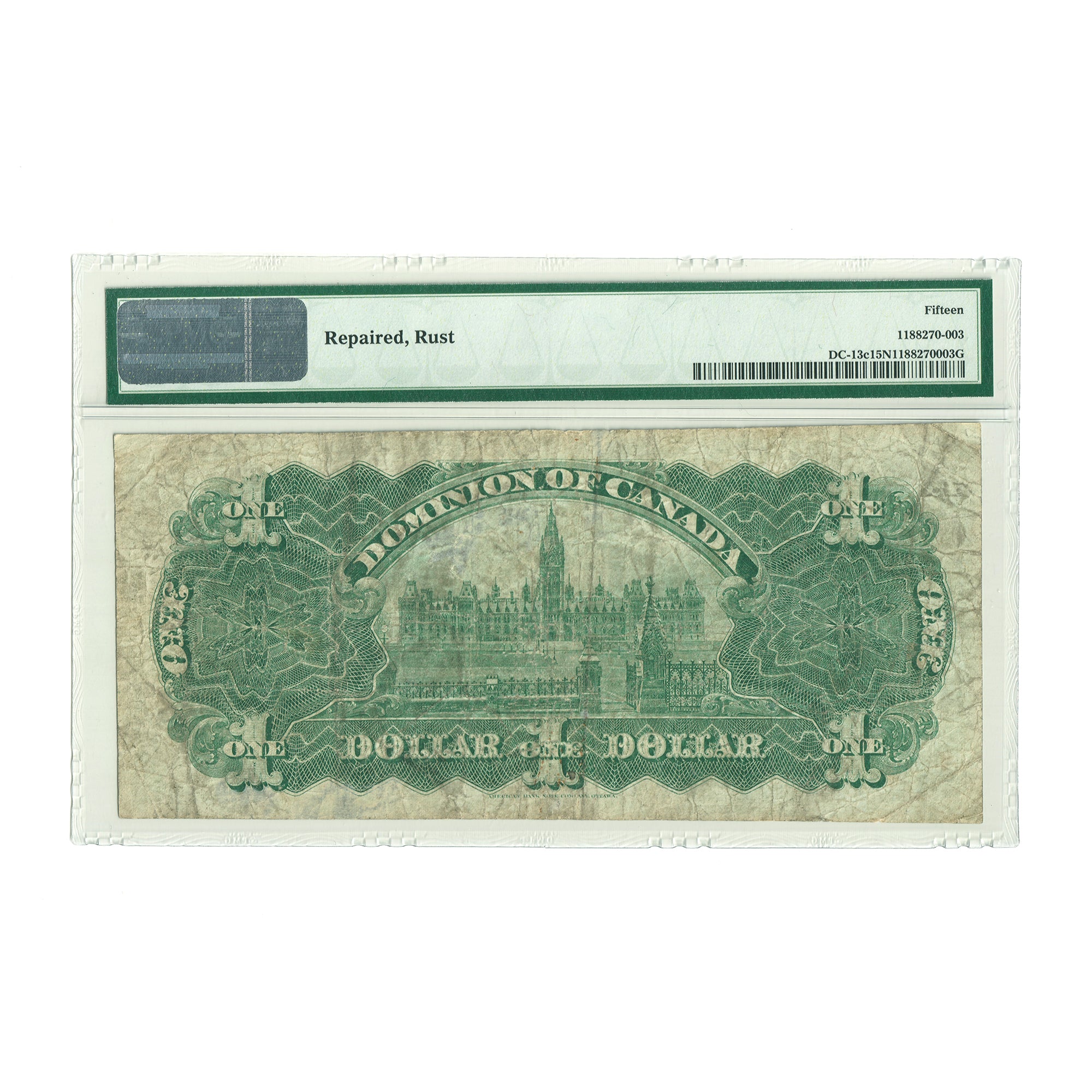 DC-13c 1898 Dominion $1 Various-Boville, Outward One's, Series L to S, PMG Cert. F15 (repaired, rust)